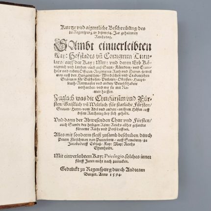 Los 13: FLEISCHMANN, Peter: Kurtze und aigentliche Beschreibung, des zu Regenspurg in disem 94. Jar gehaltenen Reichstag