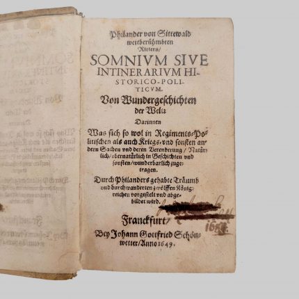 Los 24: MOSCHEROSCH, Johann Michael: Philander von Sittenwald…Somnium sive intinerarium historico-politicum – Von Wundergeschichten der Welt….