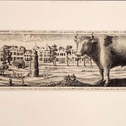 Los 120: FEILNER, Johann Everhart: Abbildung des im Jahr 1496 auf dem Neumarkt statt gehabten Schiess-Spiels, wozu eyn wirdig Rait van Coelne einen grossen feisten Ochsen den sämtlichen Gaffeln (Zünften) als Preiss des Siegers hergegeben hat