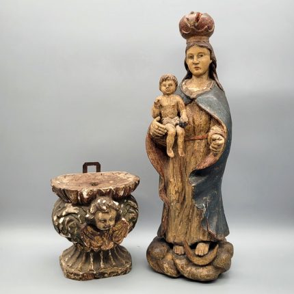 Los 470: Büste des Heiligen Nikolaus, Figur einer Heiligen, Leuchterengel