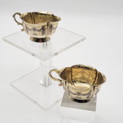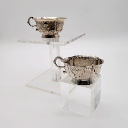 Los 175: Set von vier Gewürzschälchen mit Löffeln / Sechs Kaffeelöffel und Zuckerzange