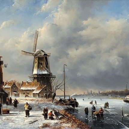 Los 174: VERMEULEN, Abraham Adrianus: Winterliche Kanallandschaft mit Windmühle