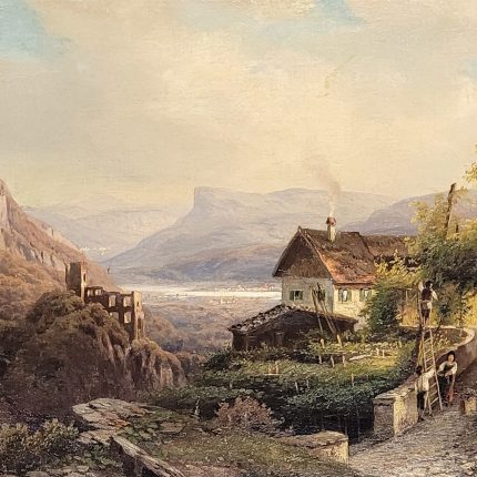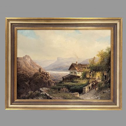 Los 249: GRAPENDORF, J.: Blick auf ein Flusstal mit Burgruine im Abendschein