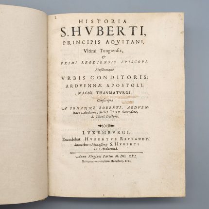 Los 58: ROBERTI, Johannes: Historia S. Huberti principis Aquitani ultimi Tungrensis…eiusdemque urbis conditoris Arduennae apostoli…