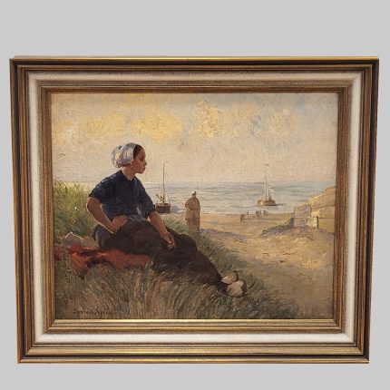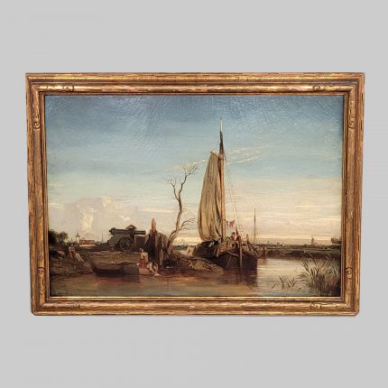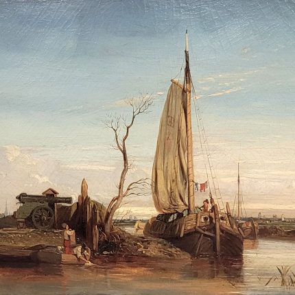 Los 265: LE POITTEVIN, Eugène Modeste Edmond: Fischer an einem kanonenbewehrten Flussufer