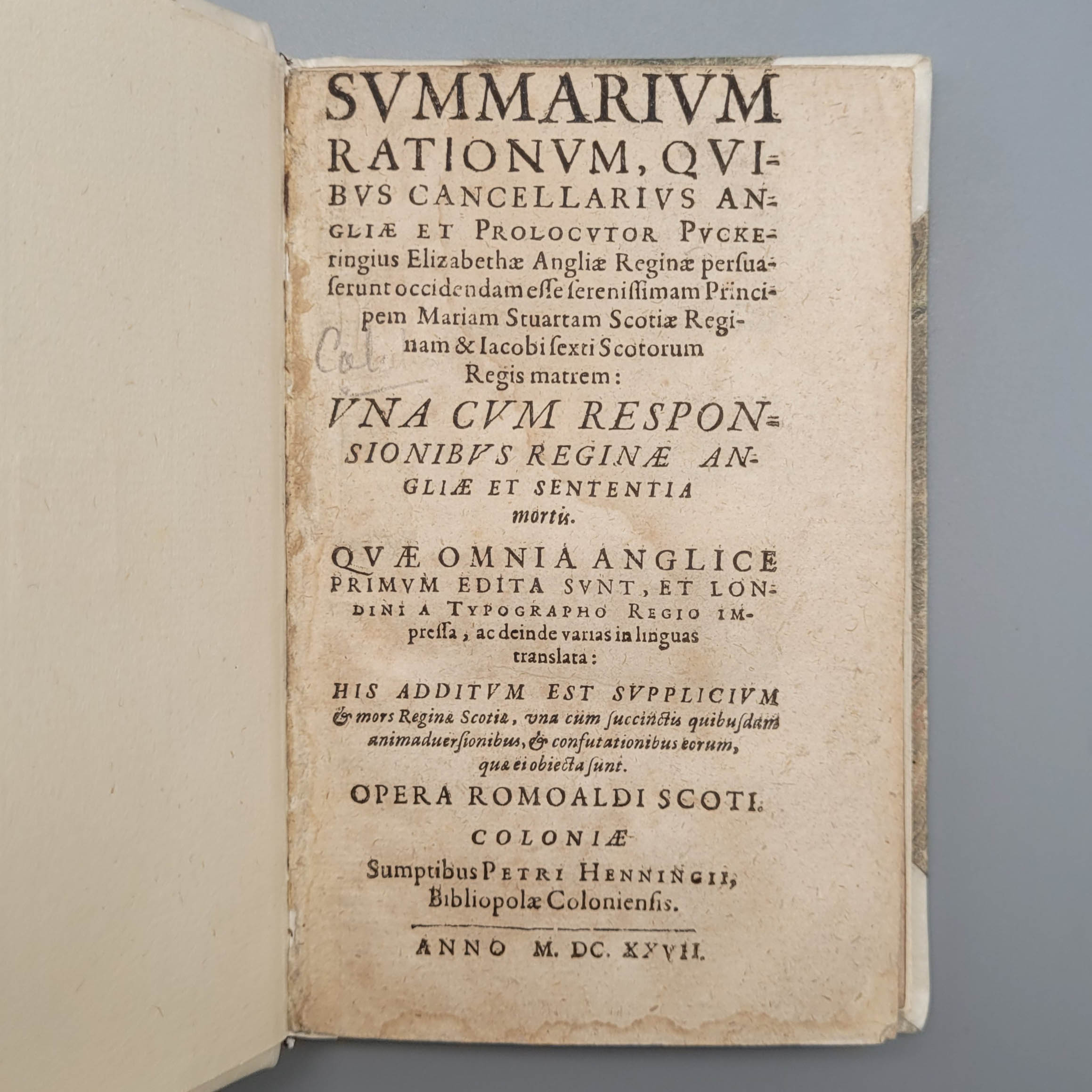 SCOTUS, Romualdus: Summarium rationum, quibus cancellarius Angliae…Mariam Stuartam Scotiae Reginam…