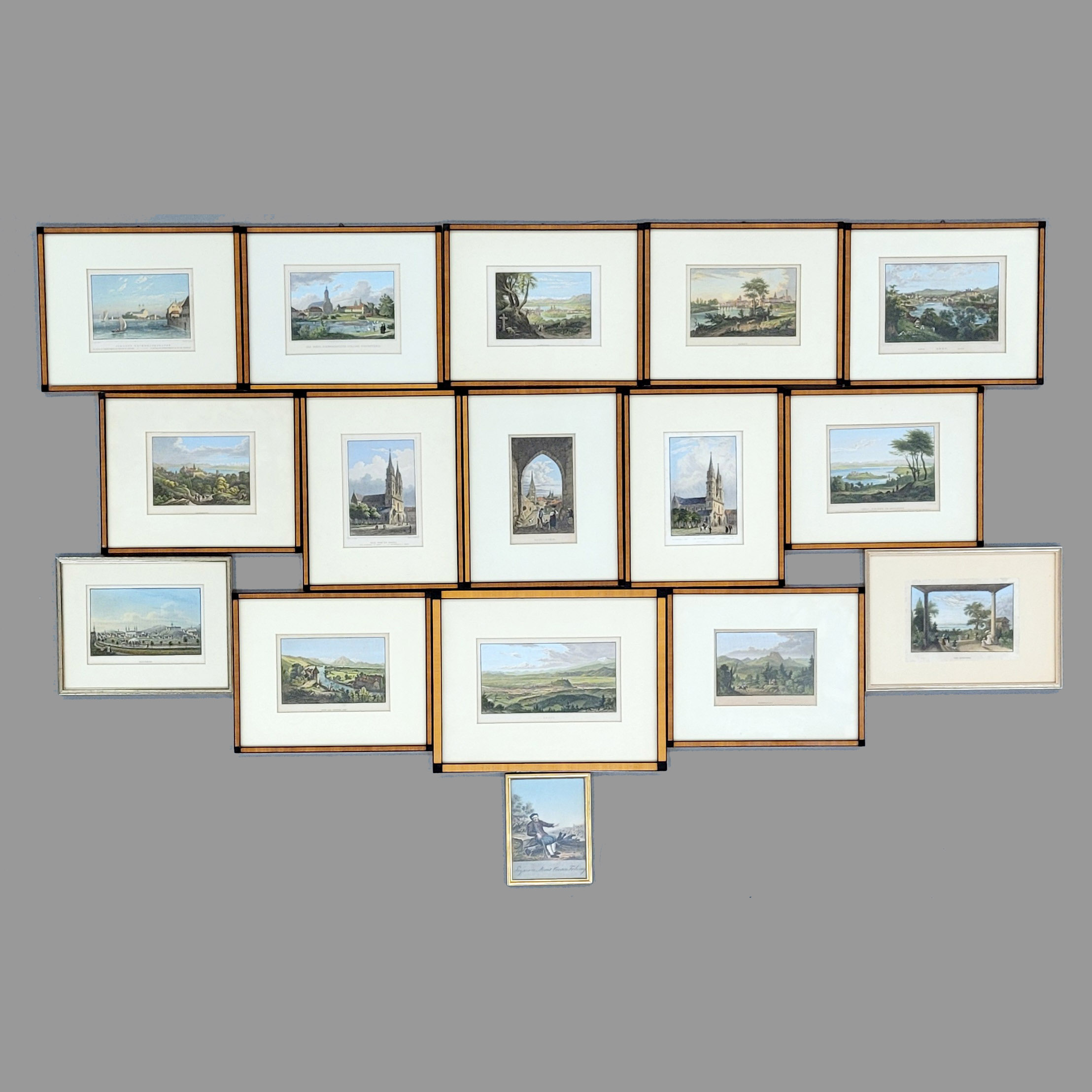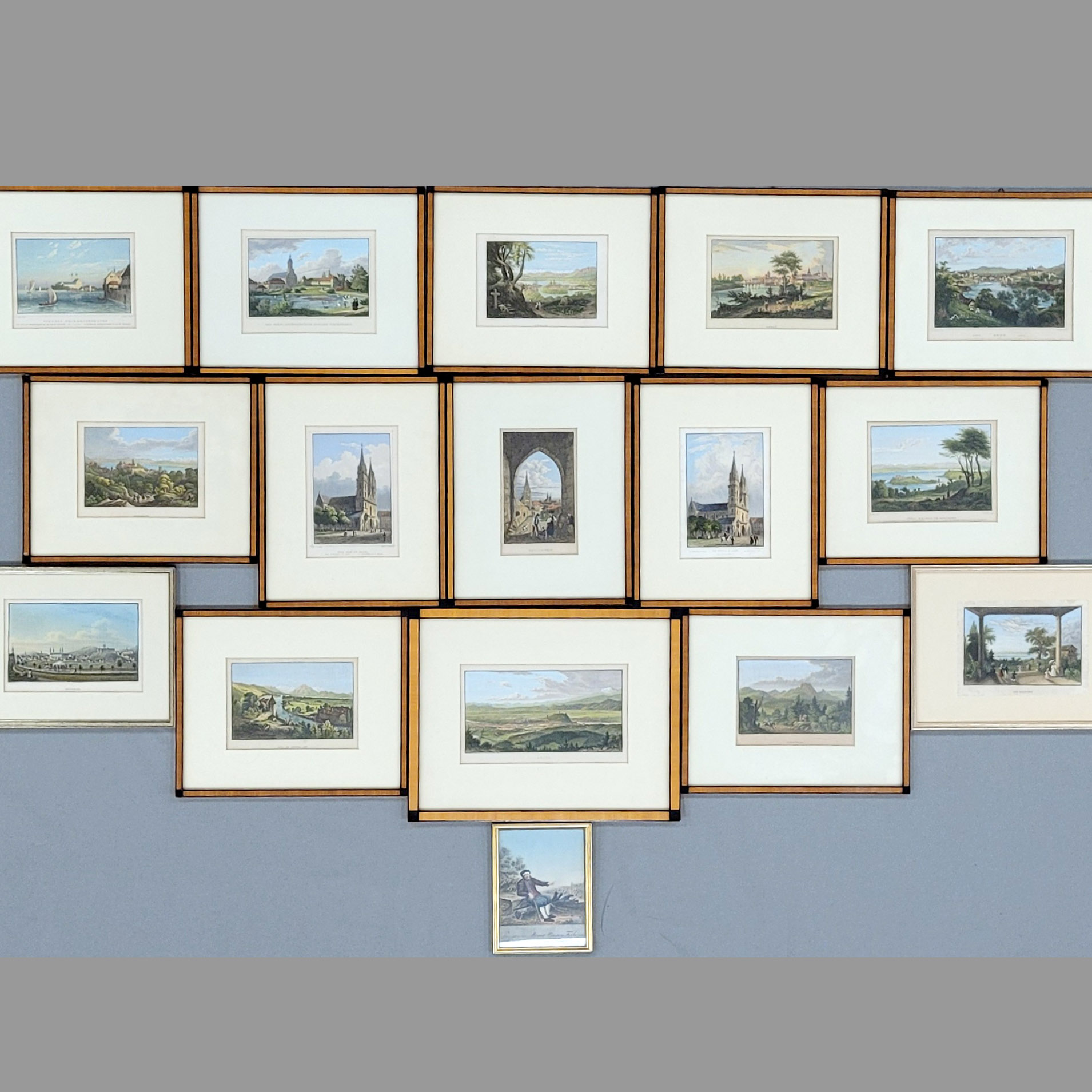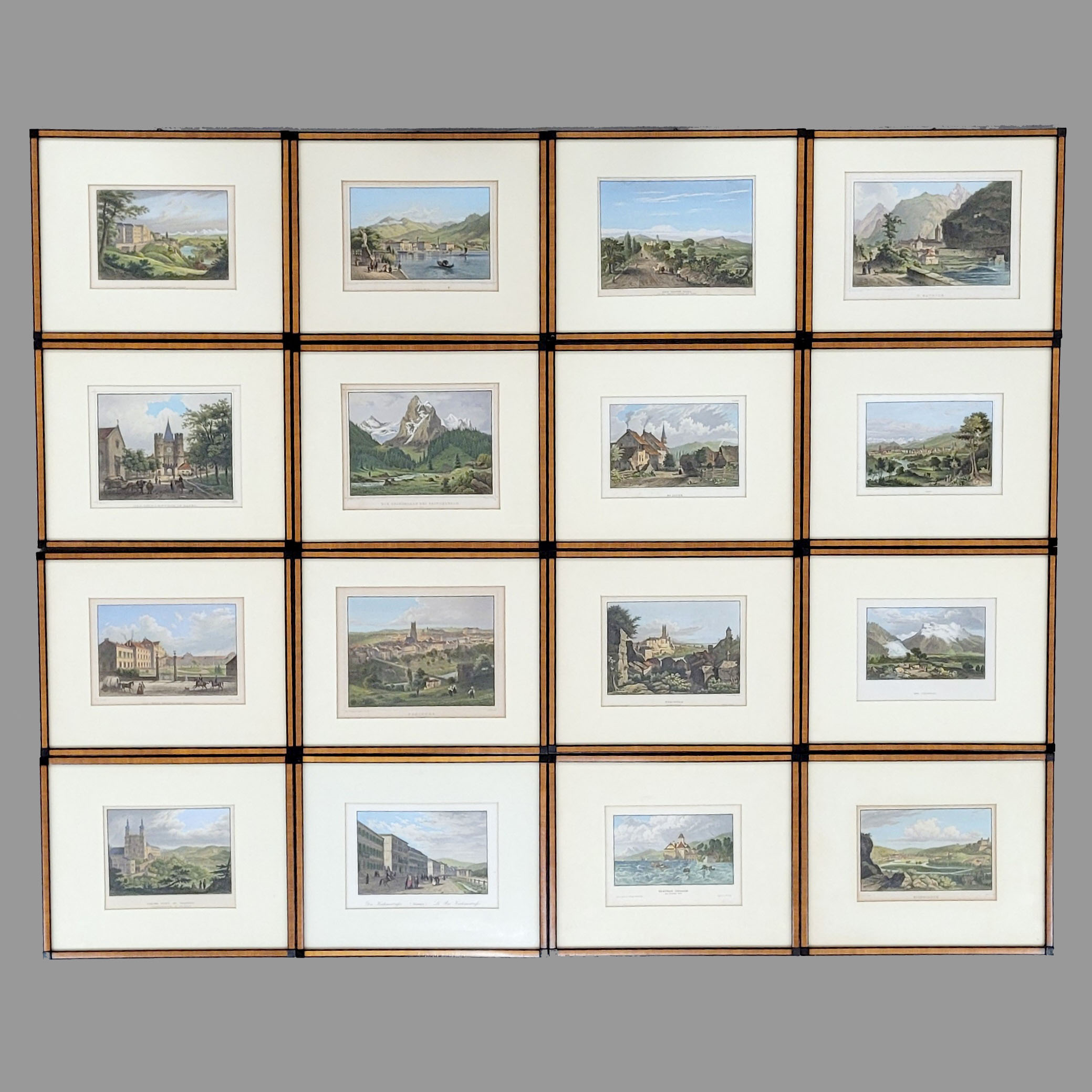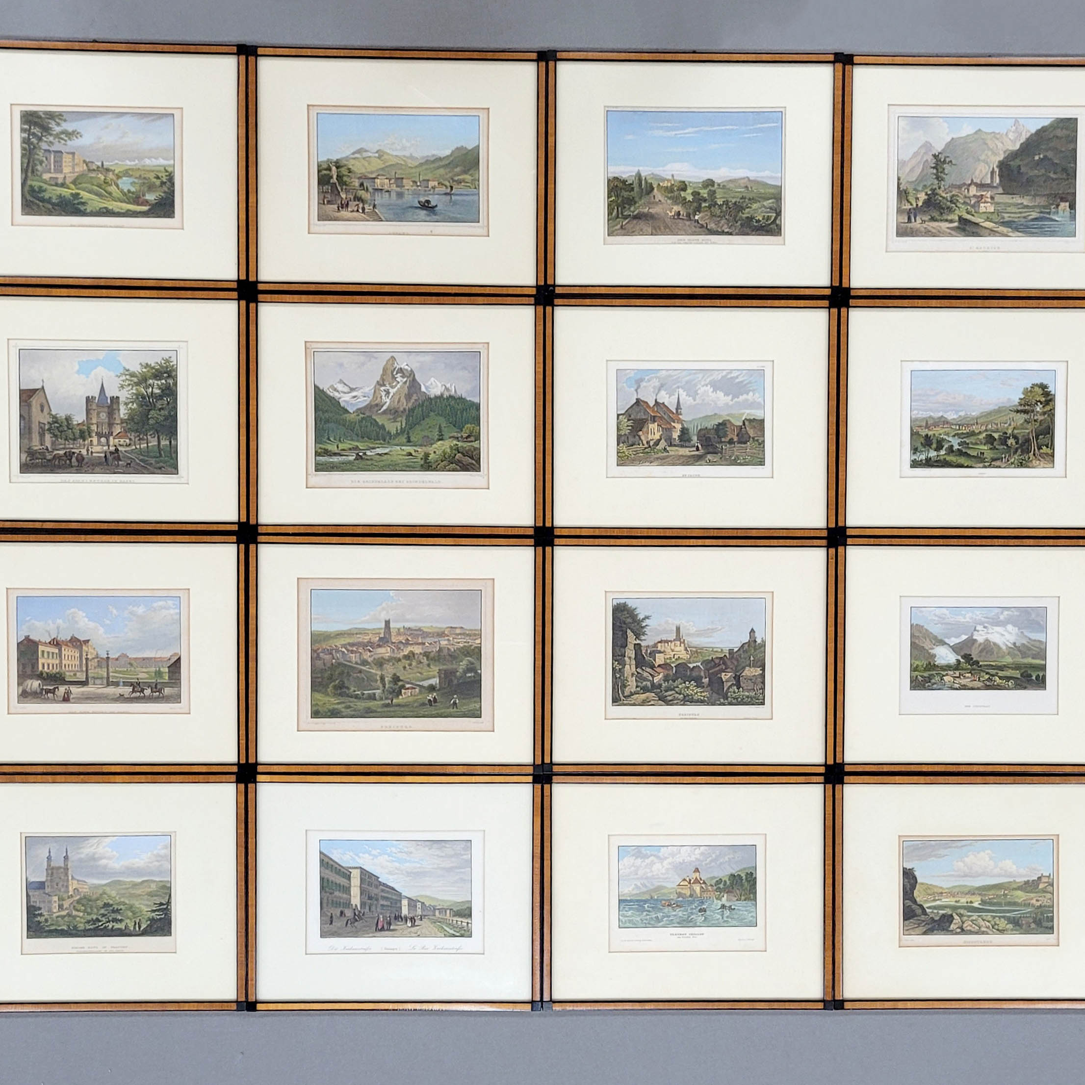 Konvolut Ansichten aus der SchweizStahlstiche, koloriert, ca. 12 x 17,5 cm, identisch gerahmt unter Glas und Passepartout beigelegt wenige Ansichten aus Deutschland und Österreich, insgesamt mehr als 30 Blätter