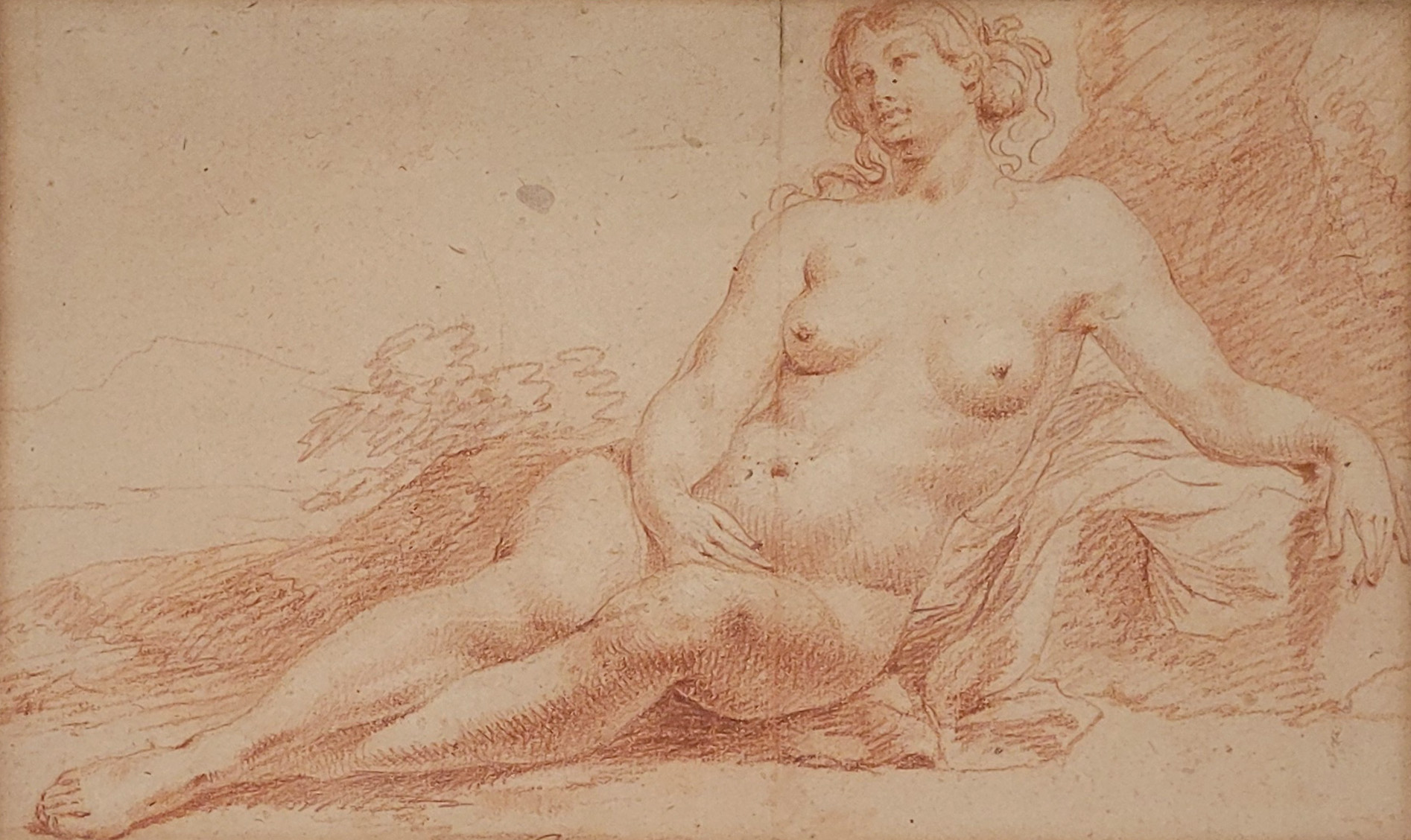 ITALIENISCHER MEISTER (17. Jh.): Sitzender FrauenaktRötel über Bleistift auf Papier, 23,5 x 36,5 cm, gerahmt unter Glas und Passepartout