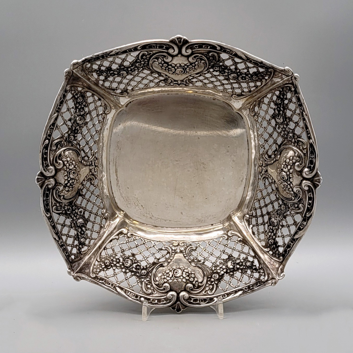 Korb mit mehrpassigem Rand800er Silber, 6 x 22,5 x 22,5 cm, Gewicht 357g