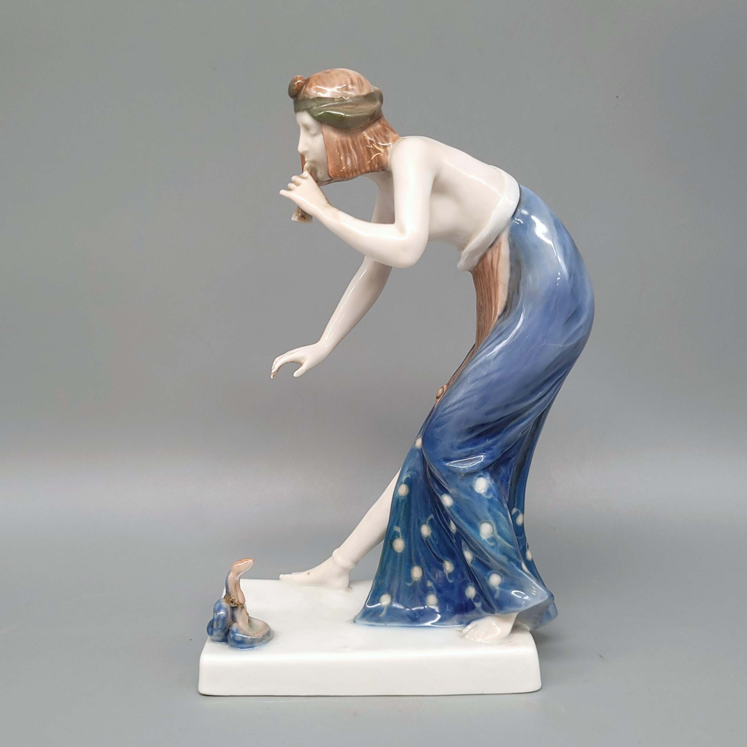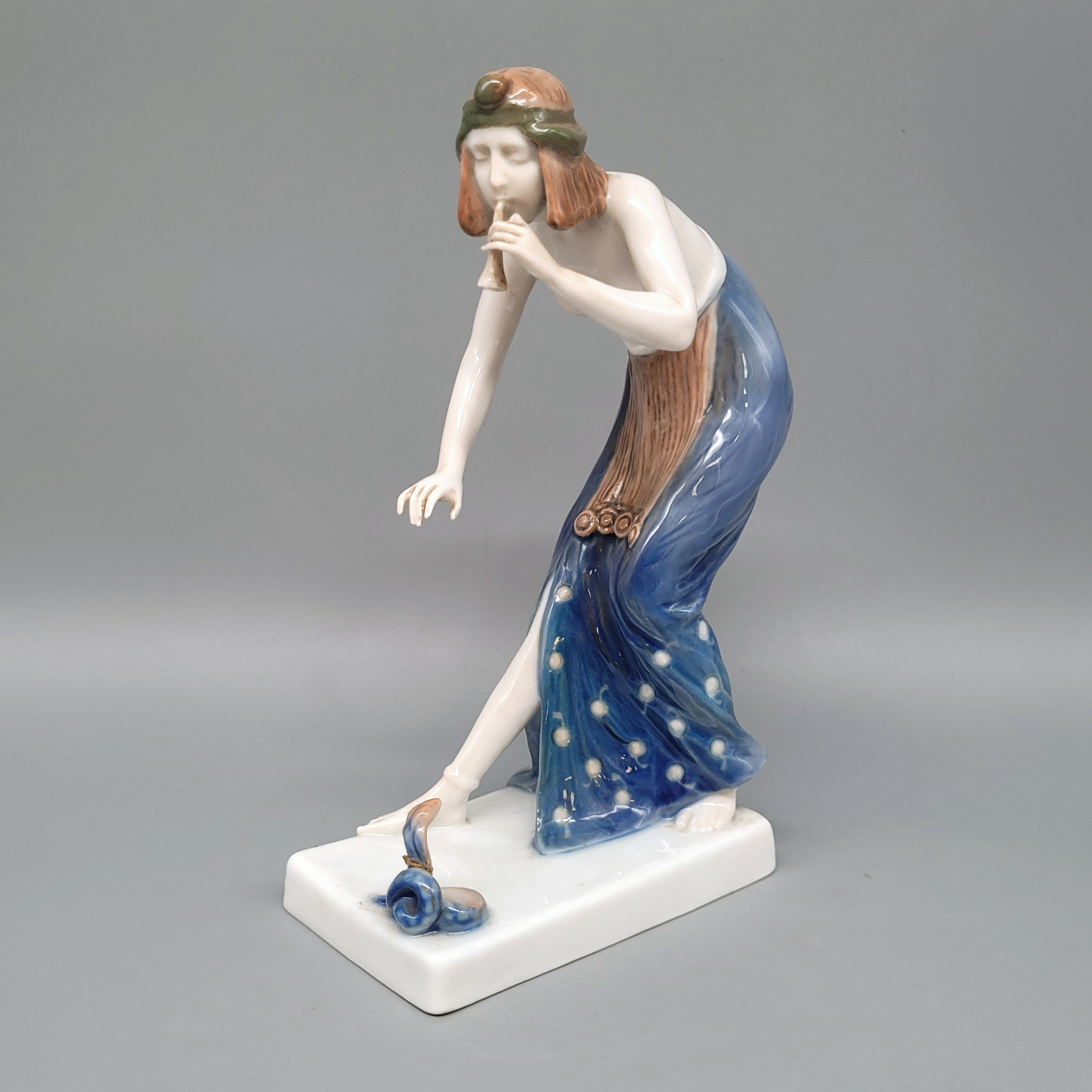 SchlangenbeschwörerinPorzellan, bemalt, Rosenthal, Selb, Entwurf Berthold Boeß (1877-1957), um 1916, bodenseitig grüne Manufakturmarke, Modellnummer K 442, Höhe 19,5 cm (Schlangenhals geklebt)