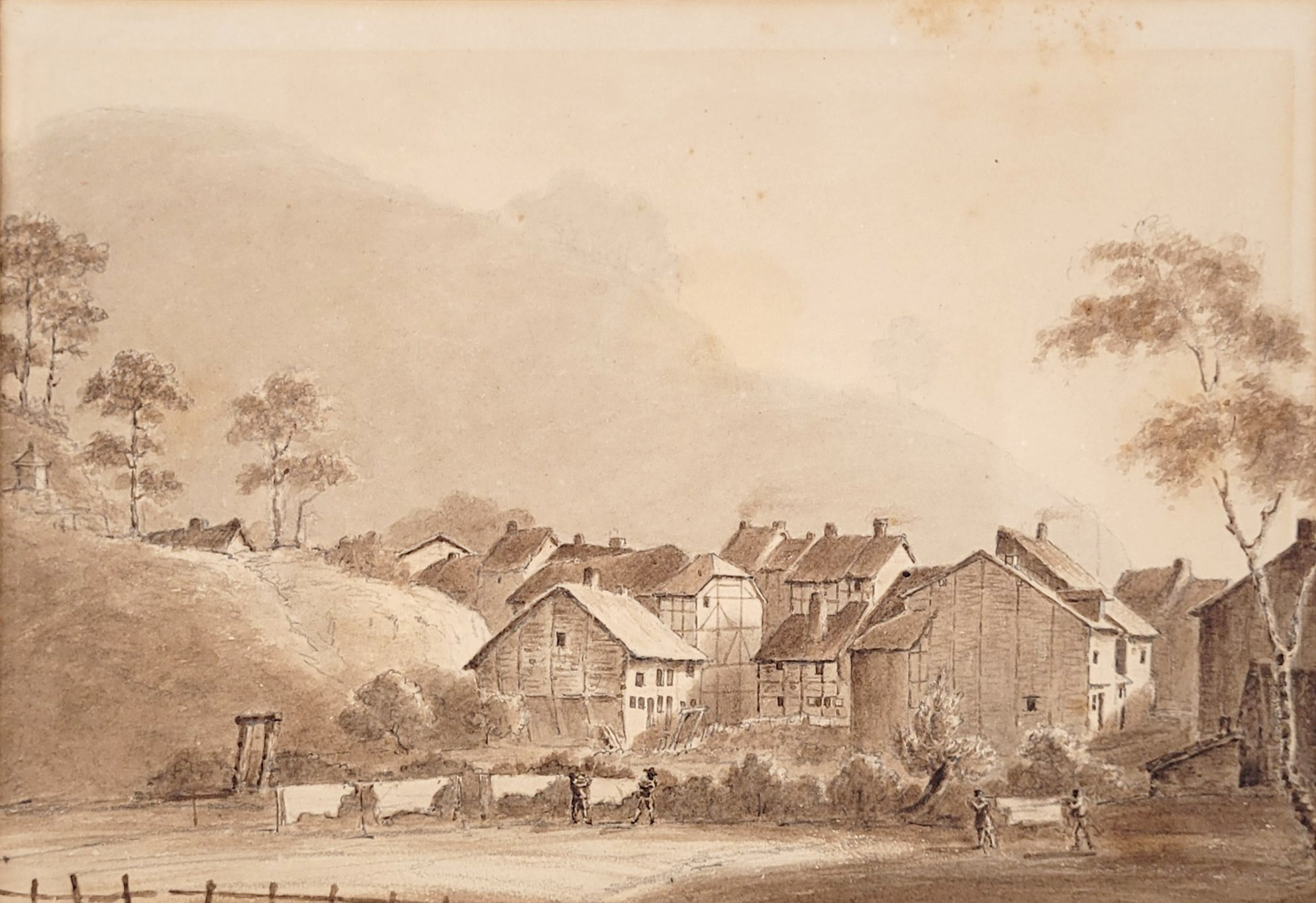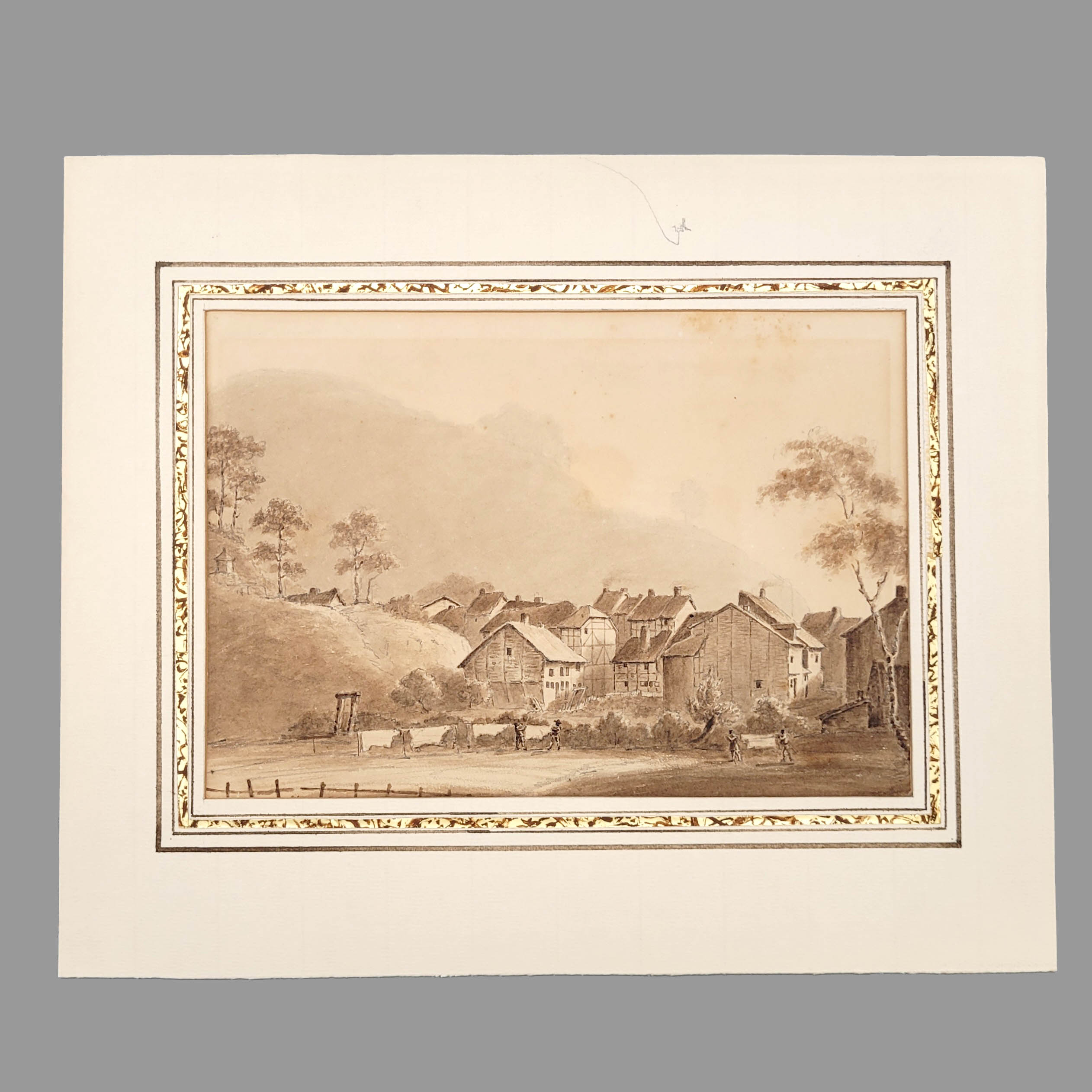 Feder, Tusche, laviert über Bleistift auf Papier, verso signiert und datiert 1832, 16,5 x 22,5 cm, montiert unter Passepartout