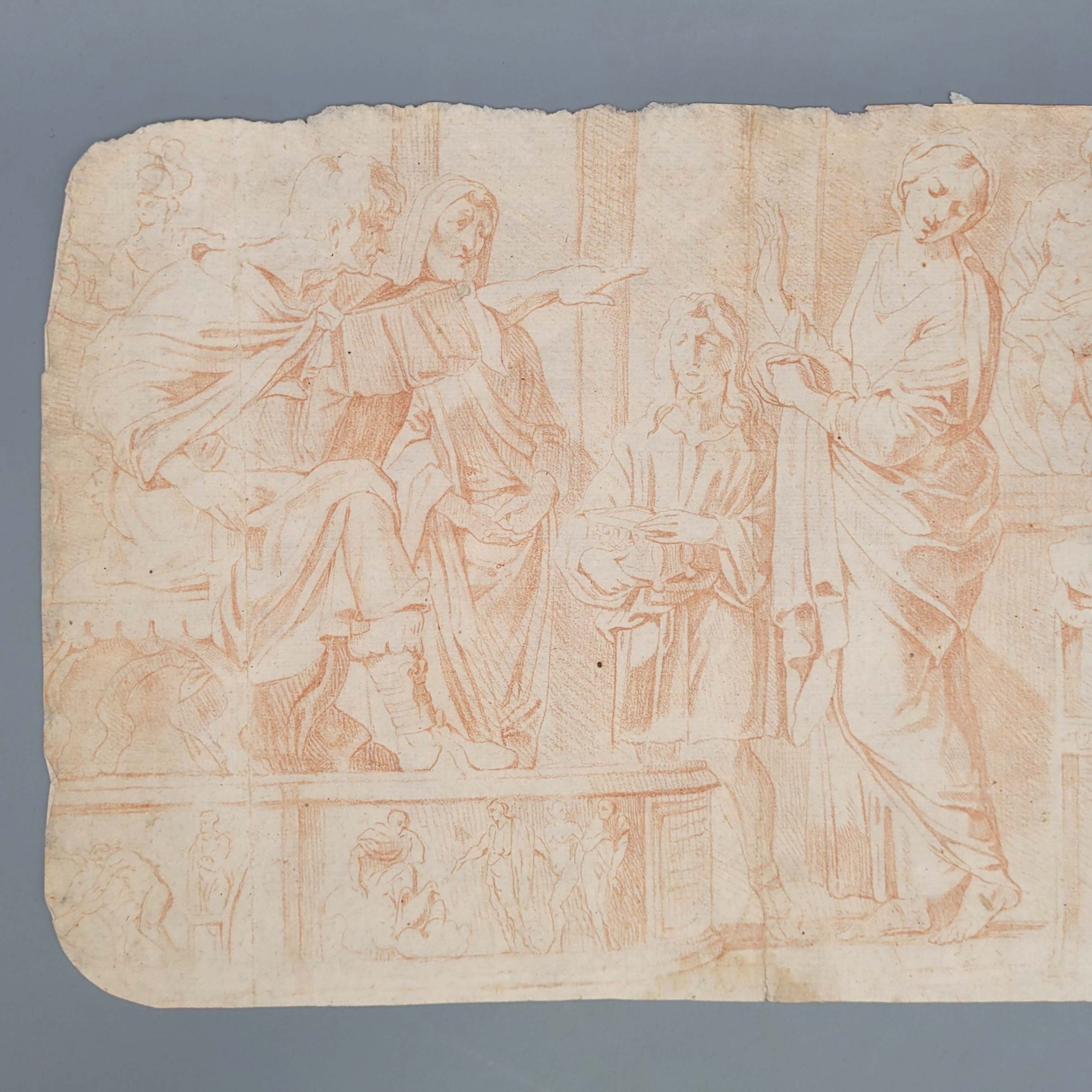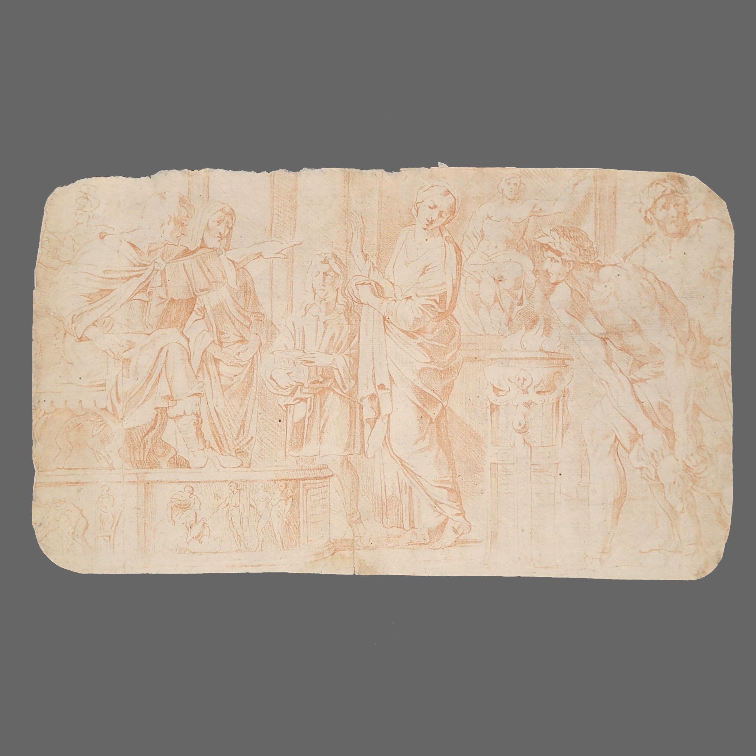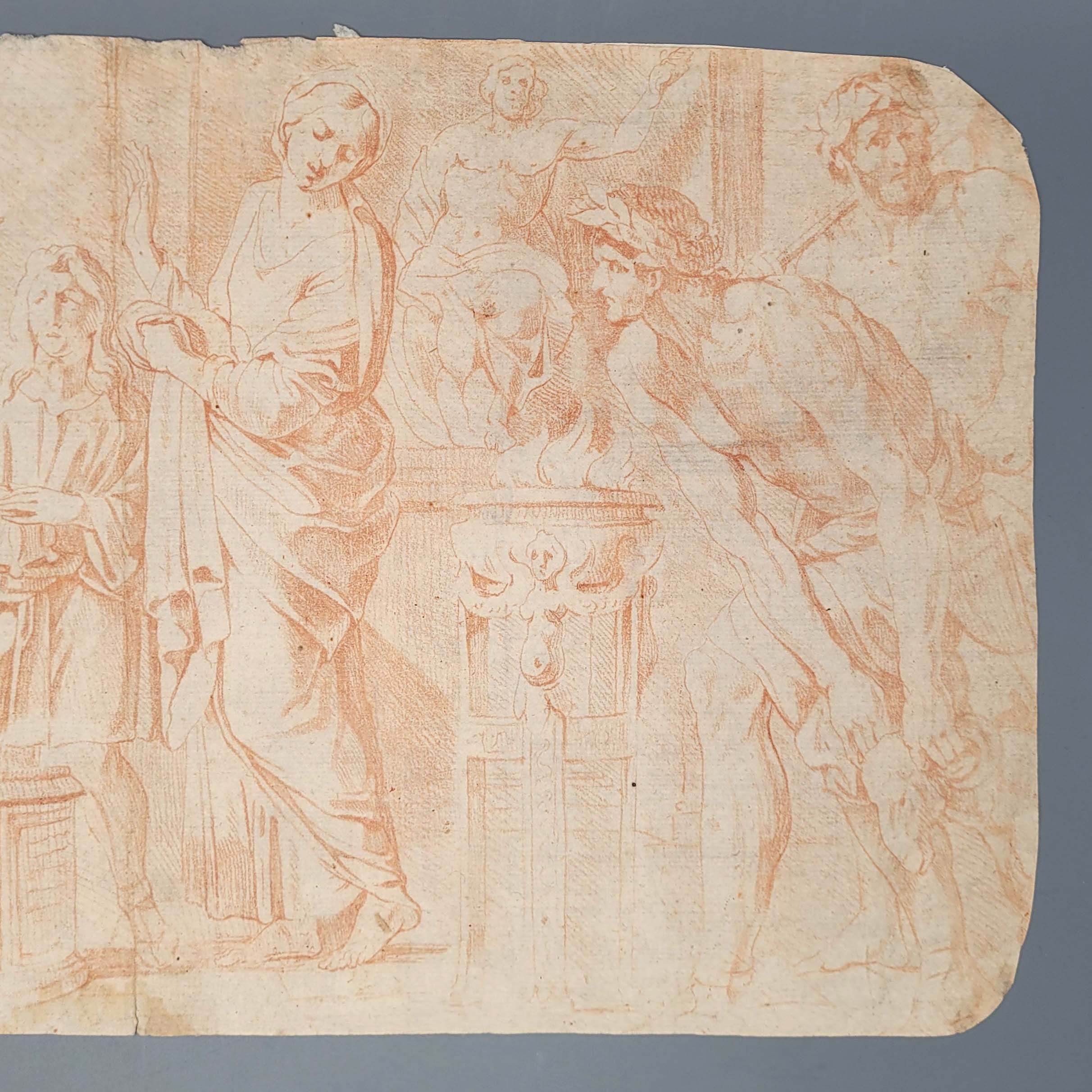 ITALIENISCHER MEISTER (17. Jh.): Mythologische SzeneRötel auf Papier, ca. 25 x 44 cm (beschnitten, Randläsuren)