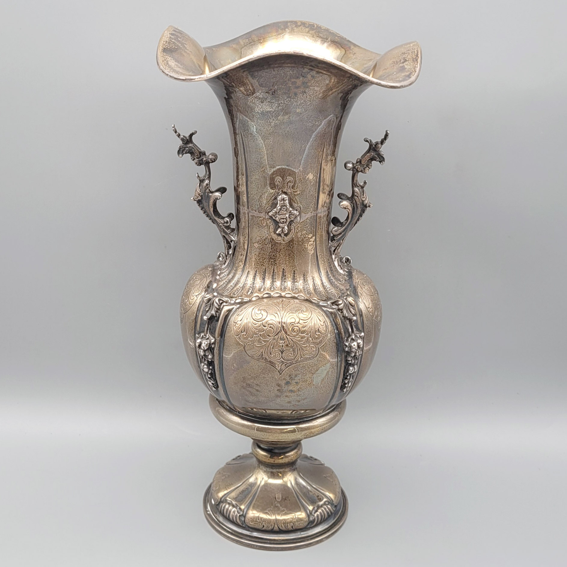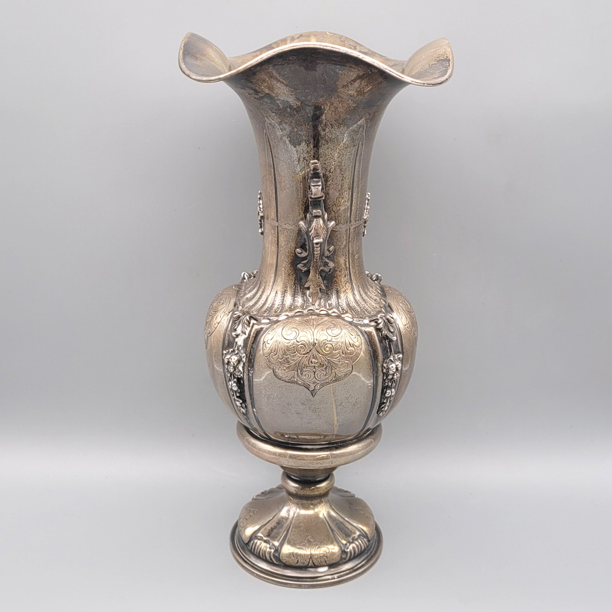 Vase mit Rankengriffen925er Silber, gravierter und getriebener Blüten- und Rankendekor, Höhe 33,5 cm, Gewicht 905g