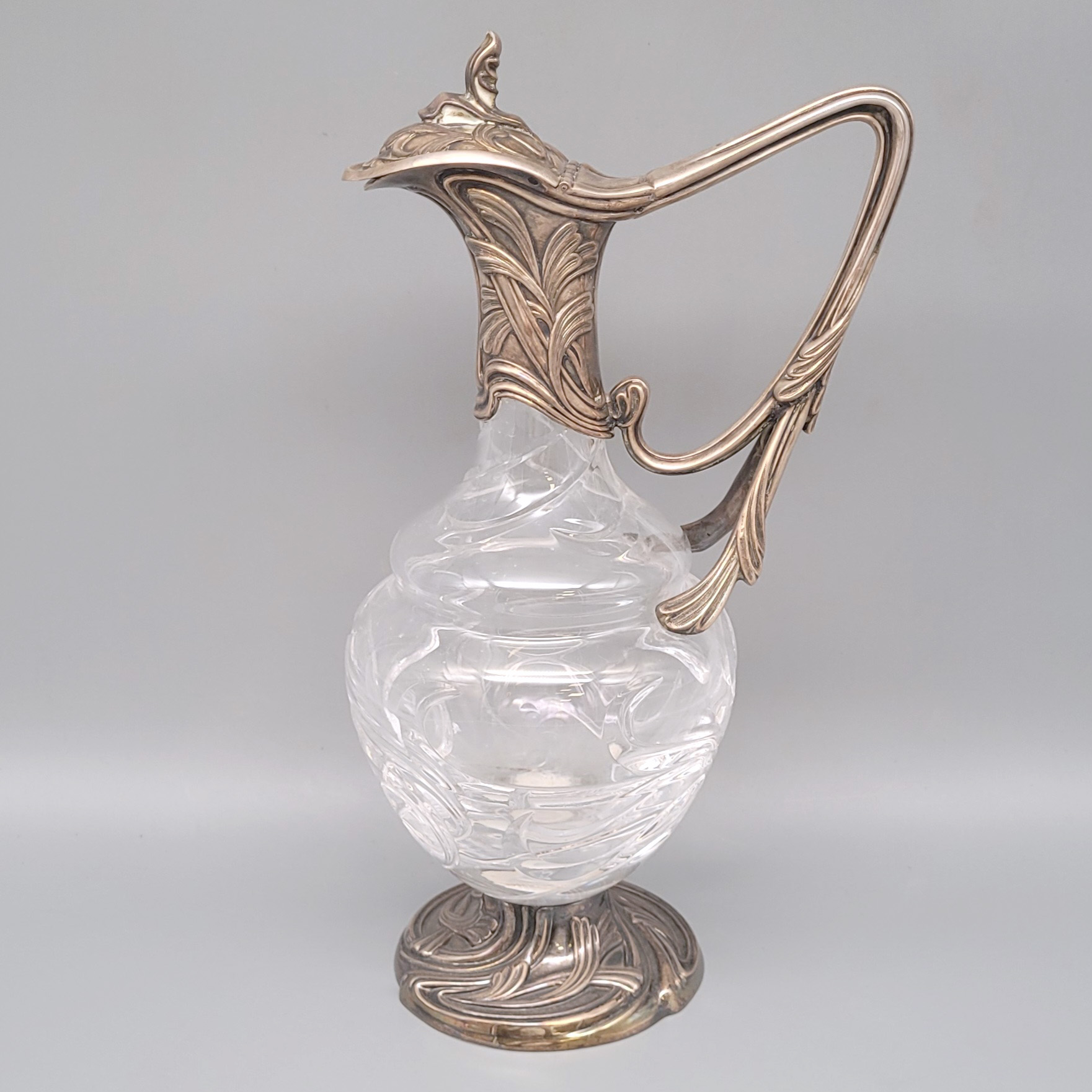 KaraffeKristallglas, geschliffen, 925er Silbermontierung, Höhe 30 cm