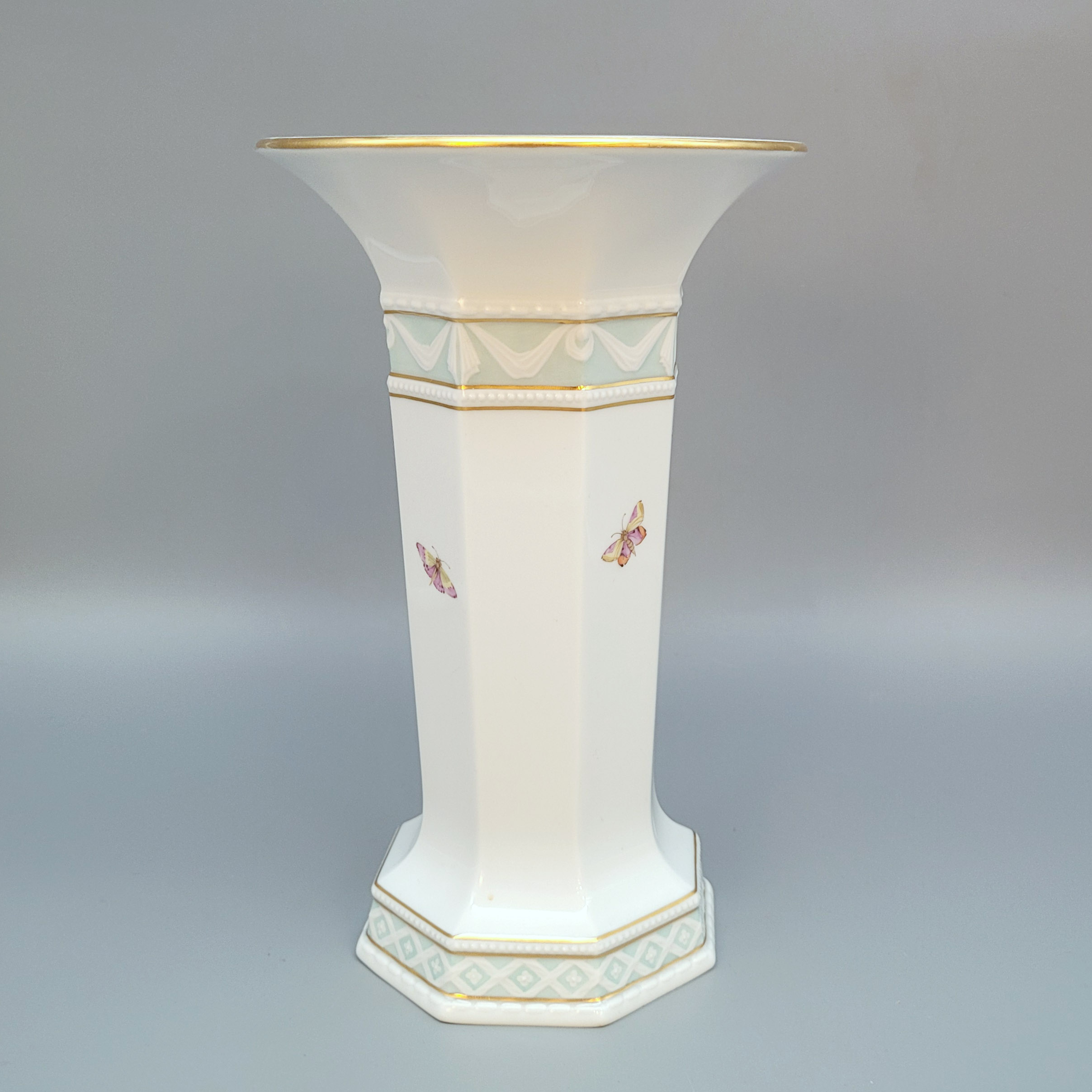 Vase KurlandPorzellan, Blumenmalerei und Schmetterlinge, KPM Berlin, Höhe 23 cm
