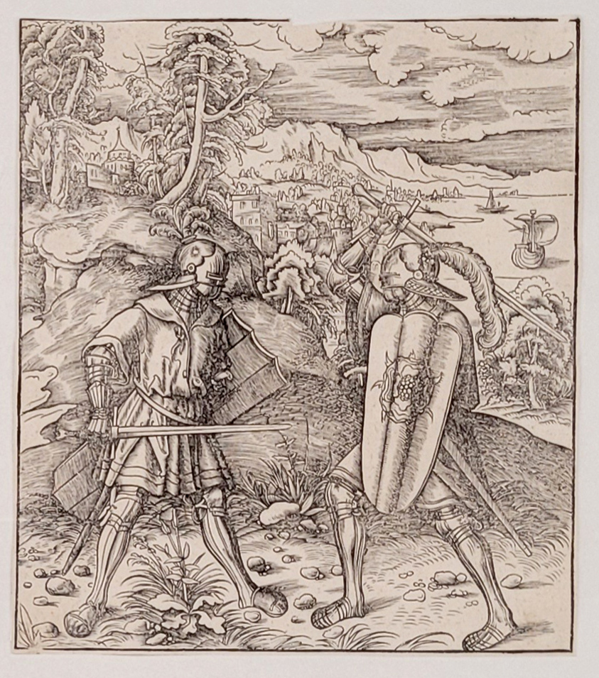 BURGKMAIR, Hans (1473-1531): Der junge Weißkunig erlernt das Fechten mit dem Böhmischen Schild