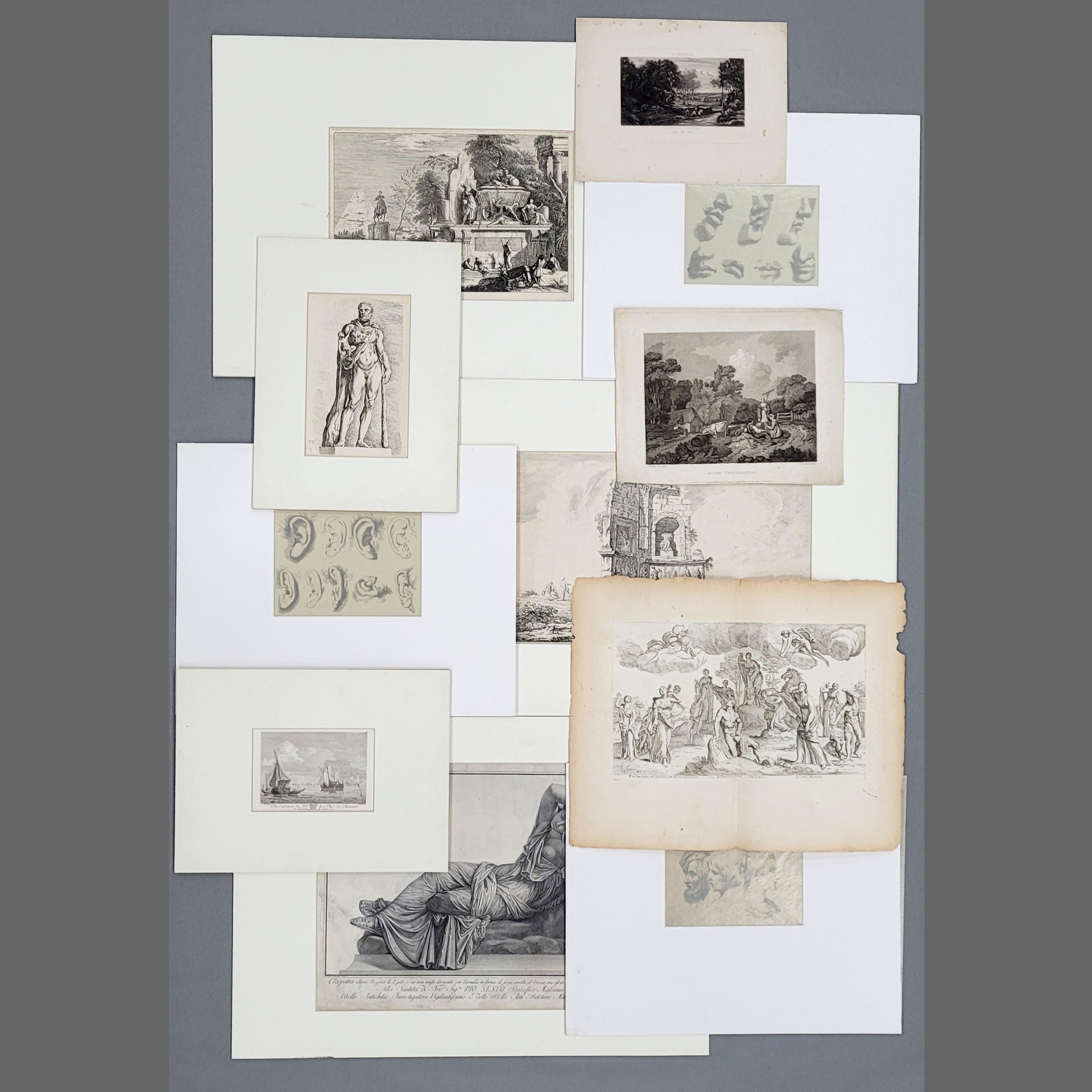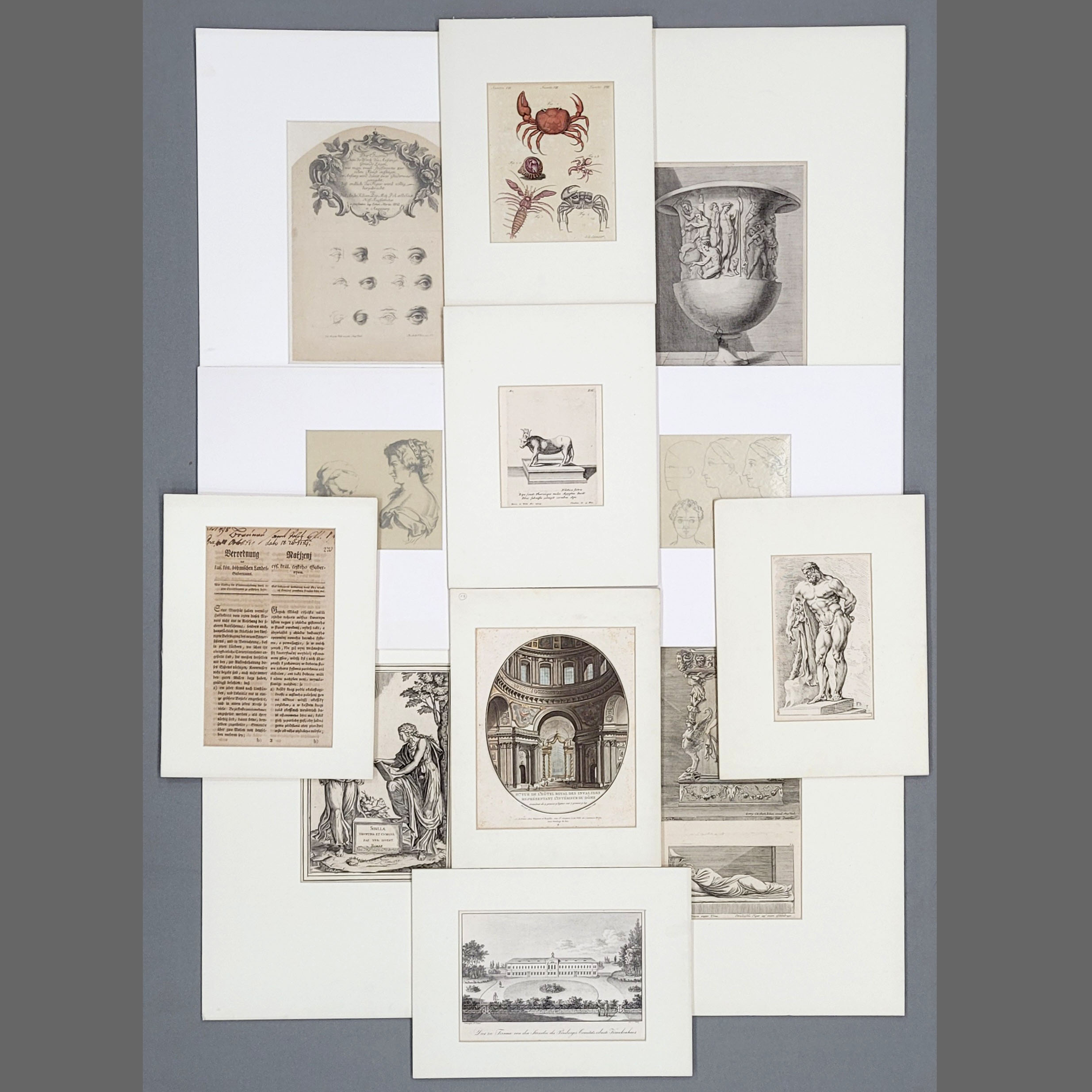 Großes Konvolut Graphik 17./18. Jahrhundertverschiedene Techniken, Größen und Zustände, montiert im Klapp-Passepartout, mehr als 20 Blatt
