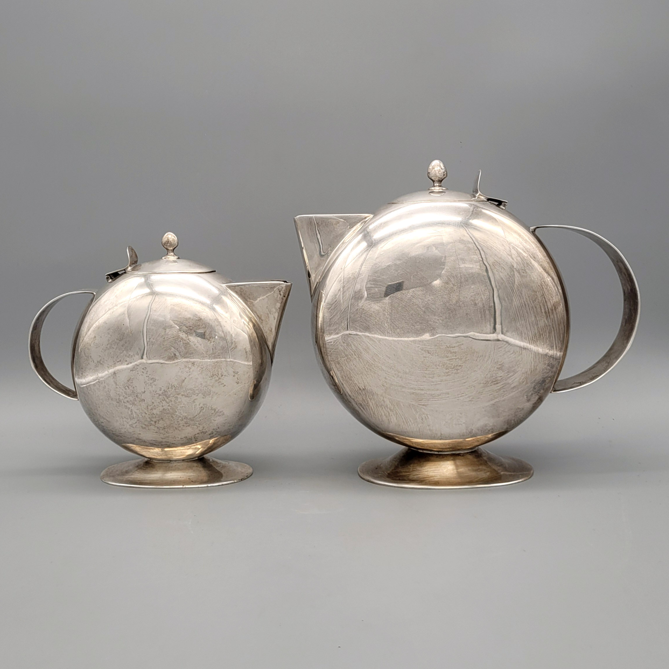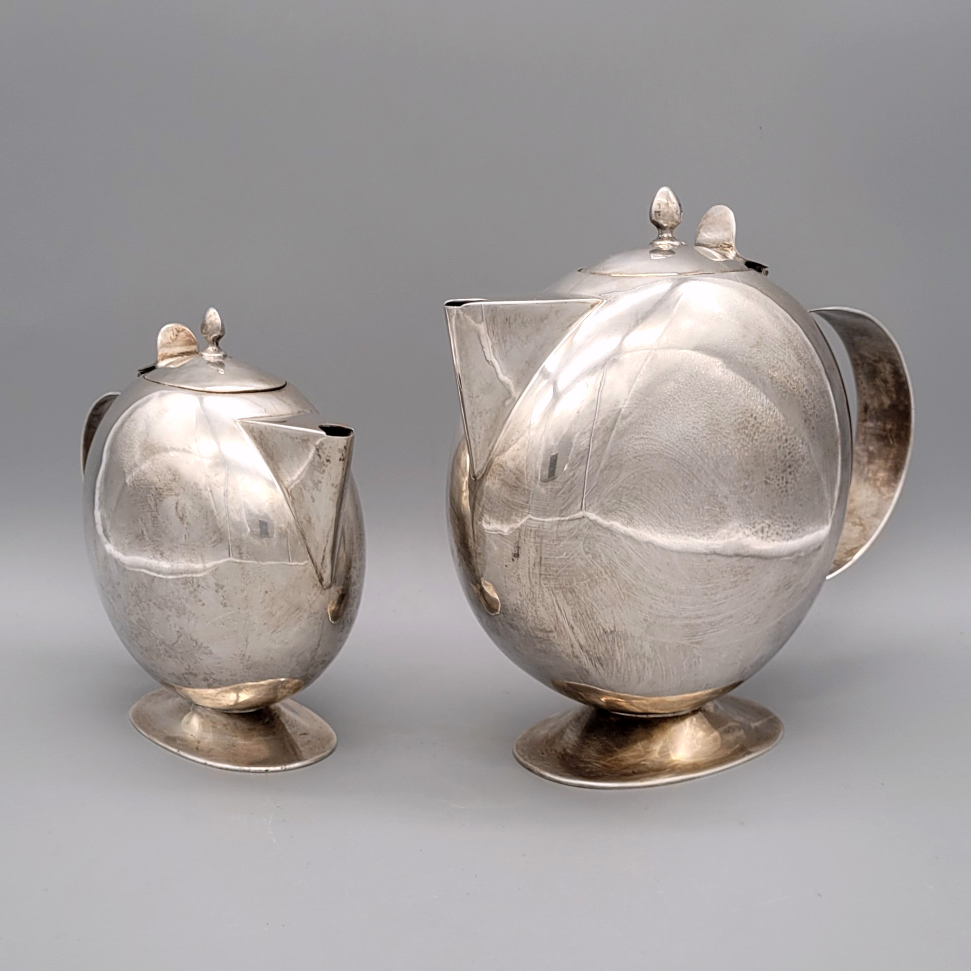 Kaffee- und Mokkakanne900er Silber, wohl Italien, um 1970, monogrammiert „AD“, Höhe 19 cm, Gewicht ca. 1170g