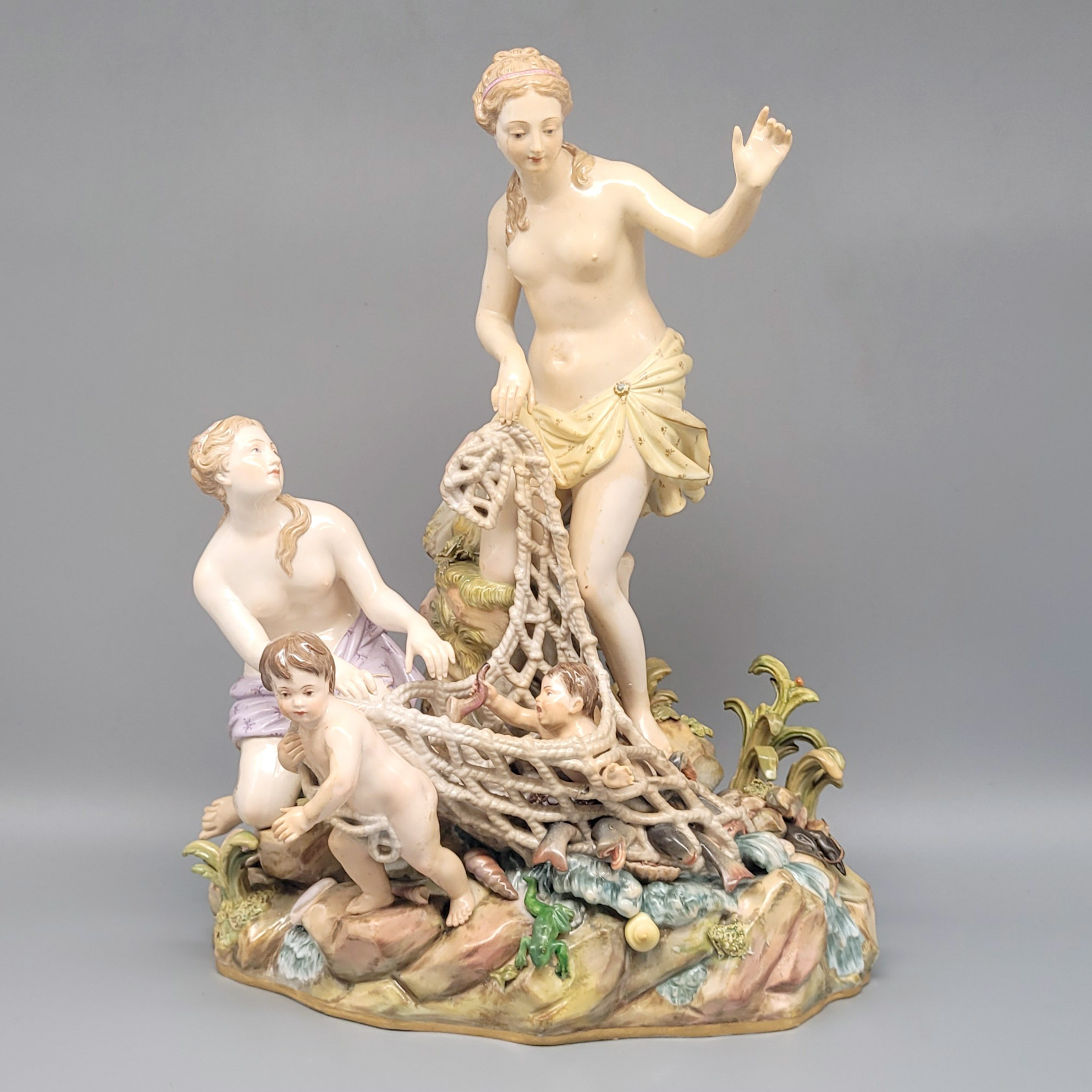 TritonenfangPorzellan, bemalt, Randvergoldung, Meissen, Knaufschwertermarke, Modell von Johann Joachim Kaendler, Modellnummer C35, Höhe 33 cm (restauriert)