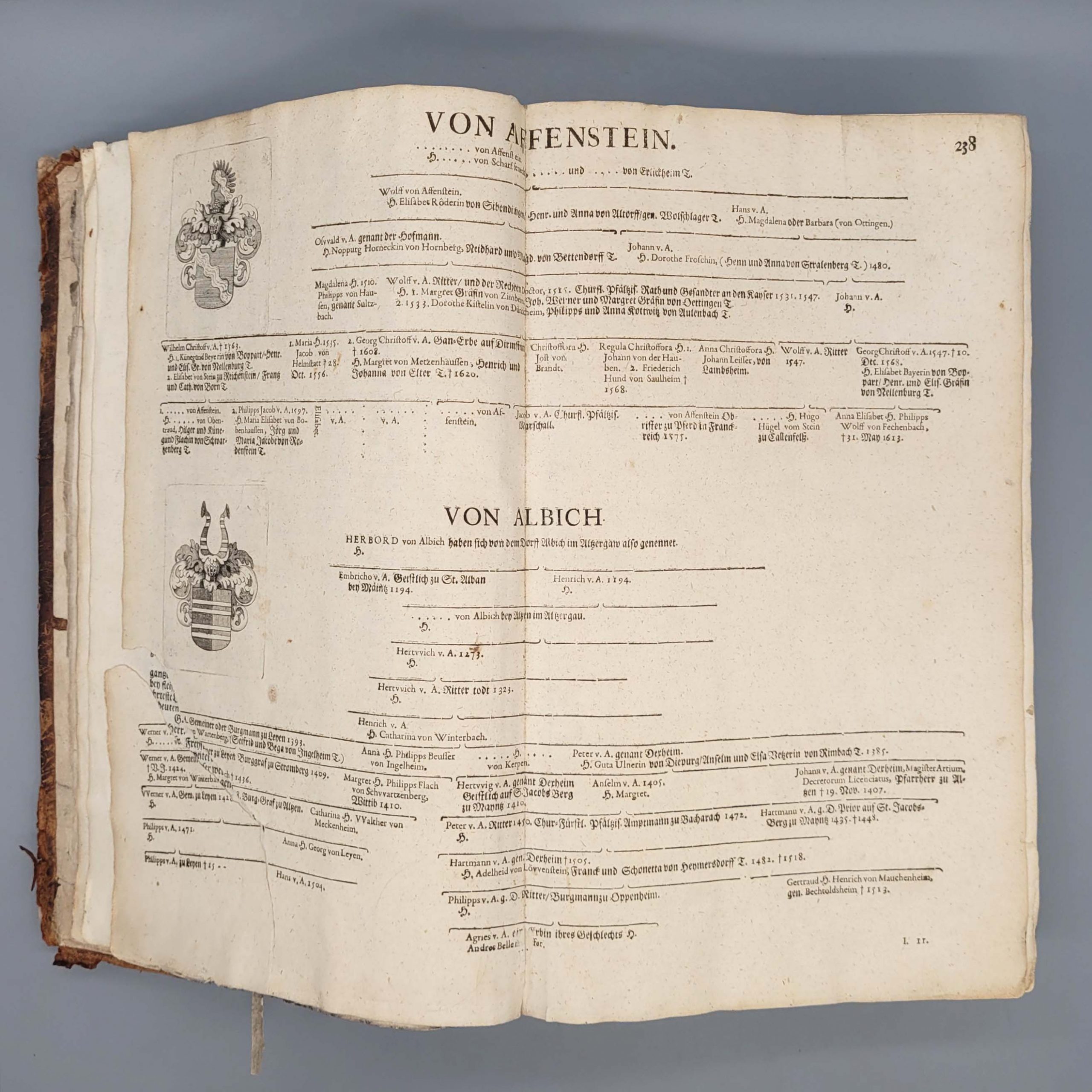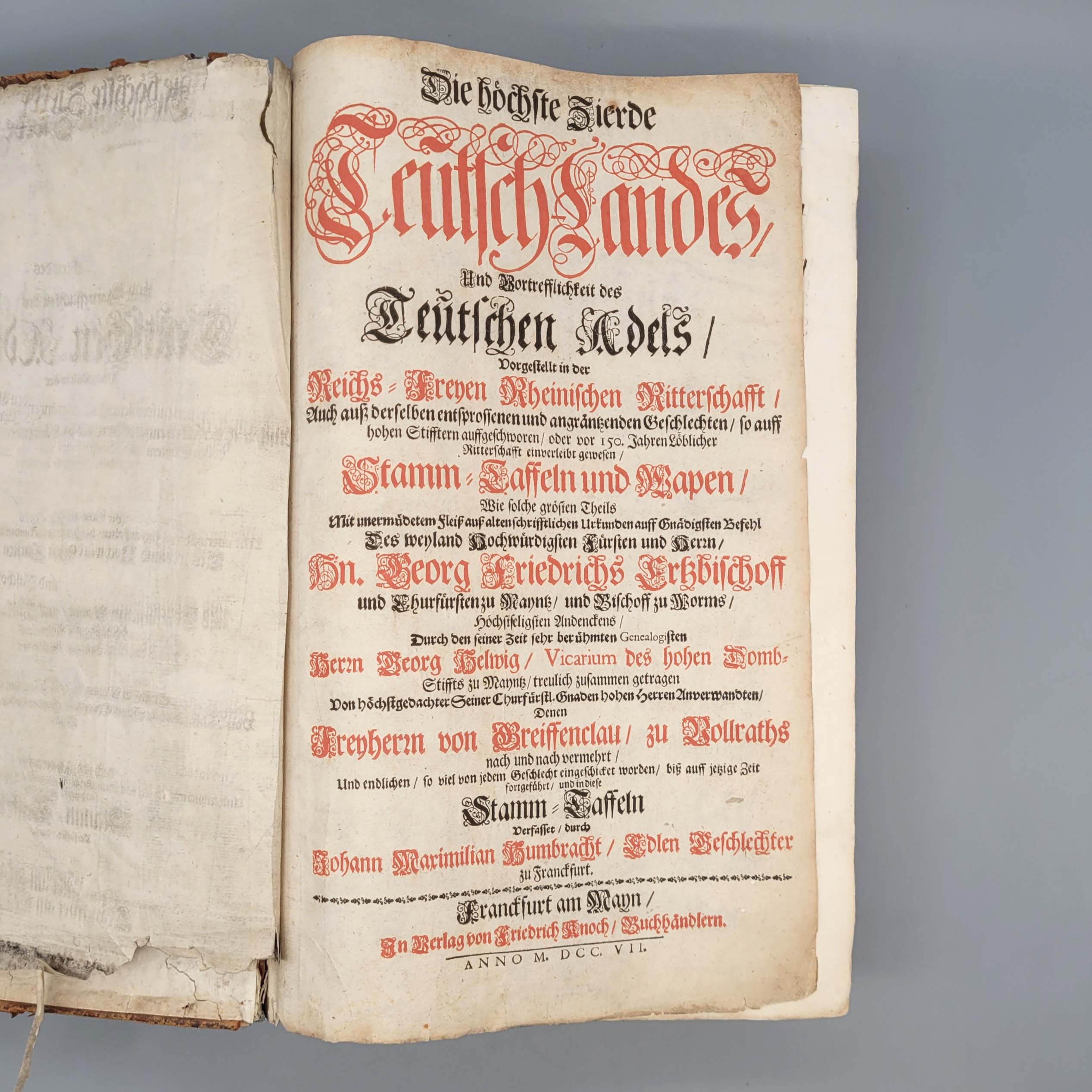 Frankfurt (Friedrich Knoch) 1707 (mit Frontispiz [beschädigt] und zahlreichen Wappenkupfern, Ledereinband der Zeit)