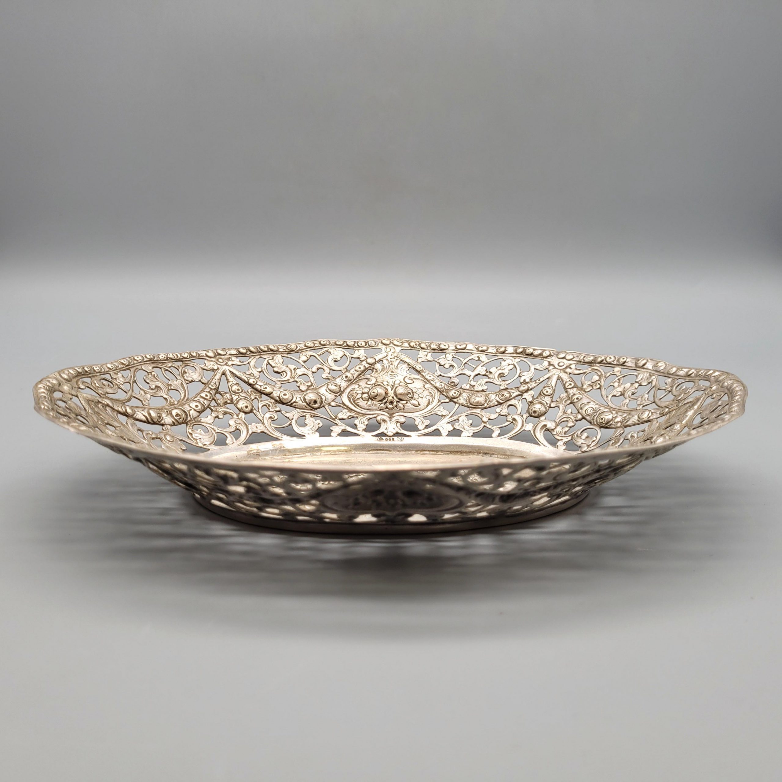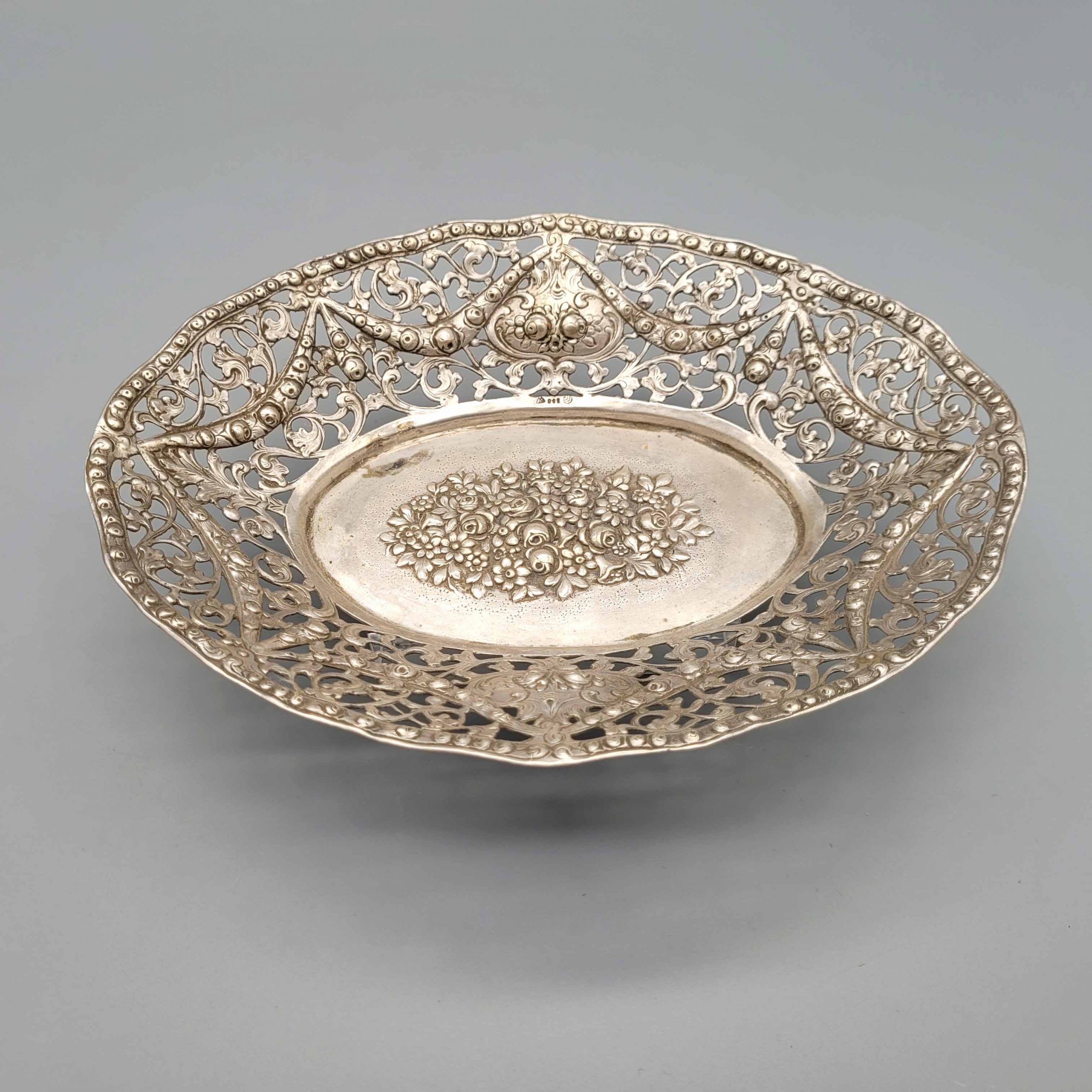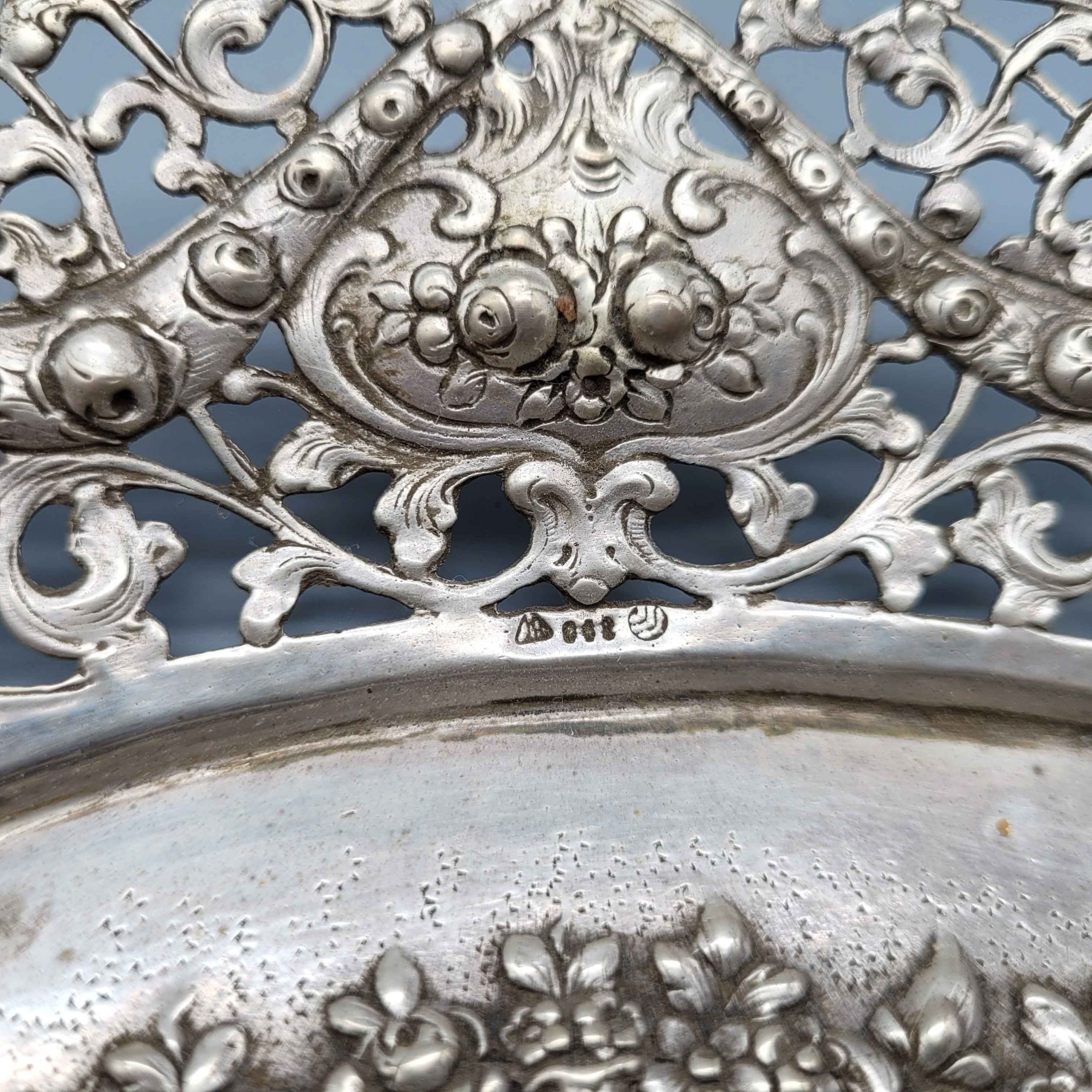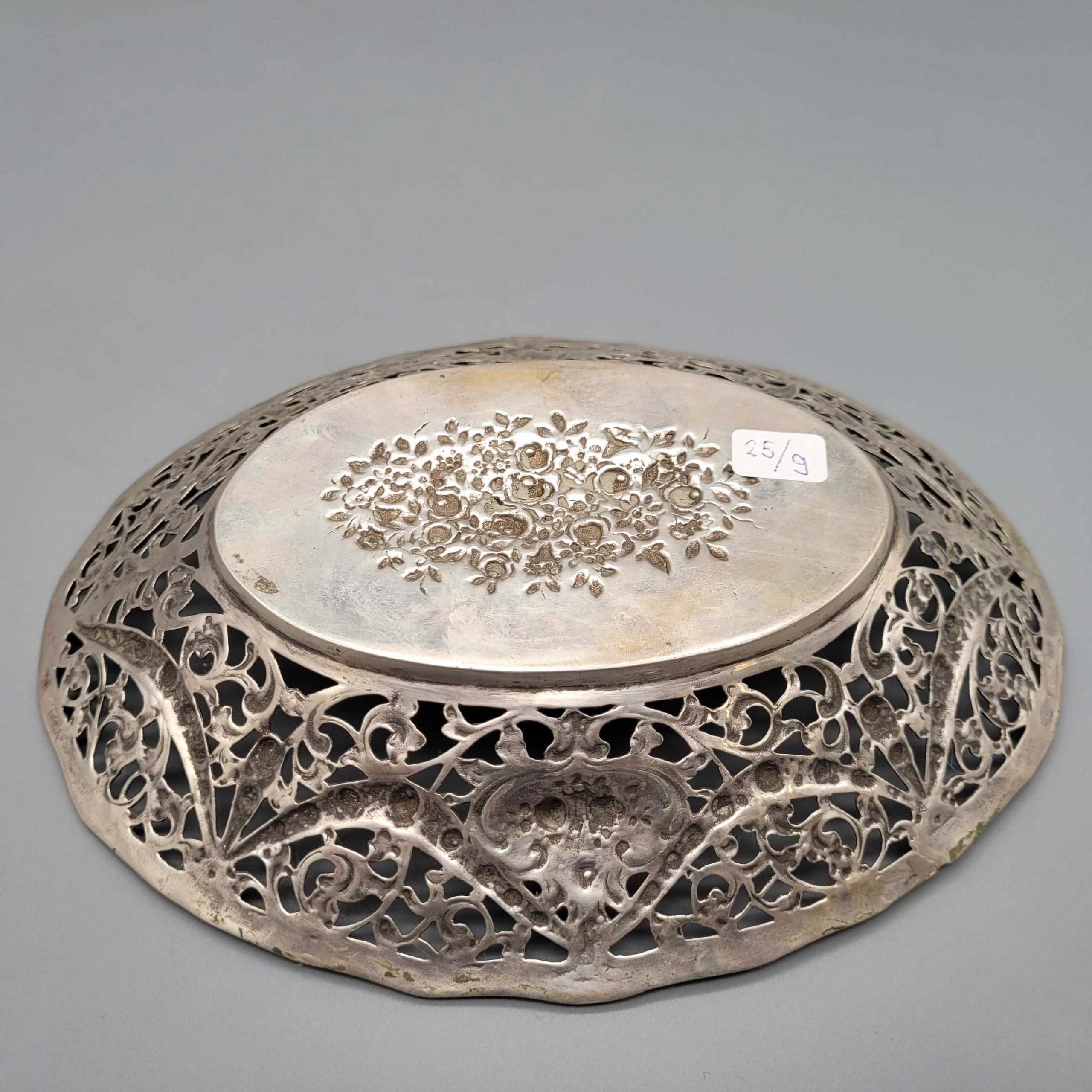 800er Silber, im Spiegel getriebenes Blumenbouquet, 3 x 21 x 16 cm, Gewicht ca. 184g