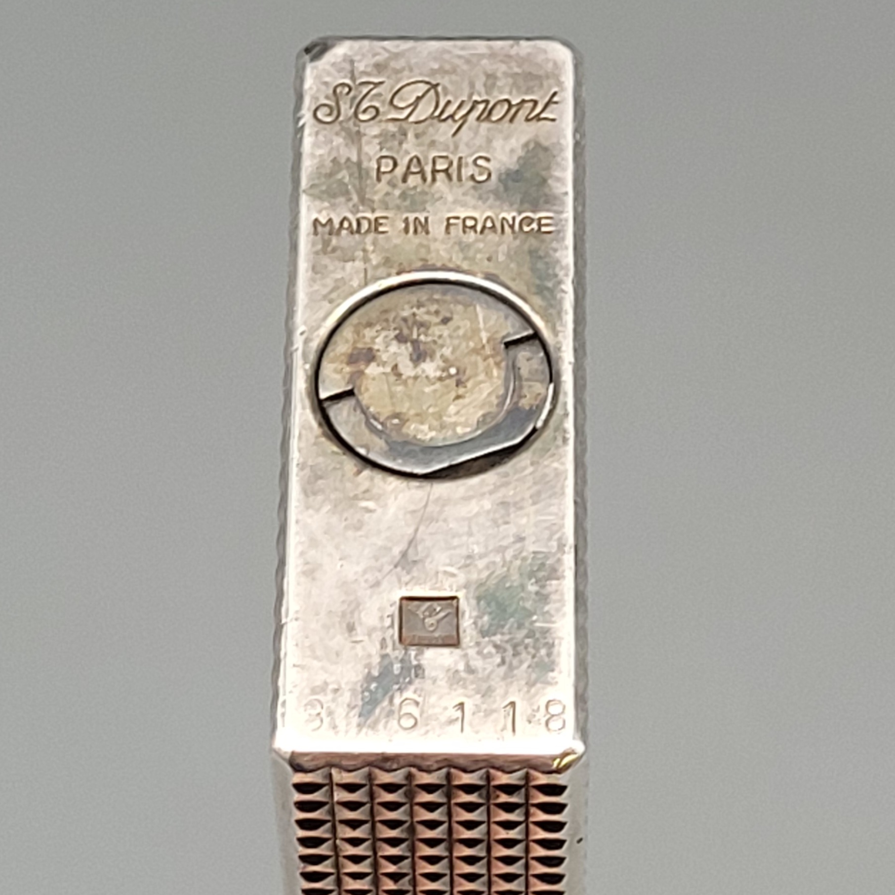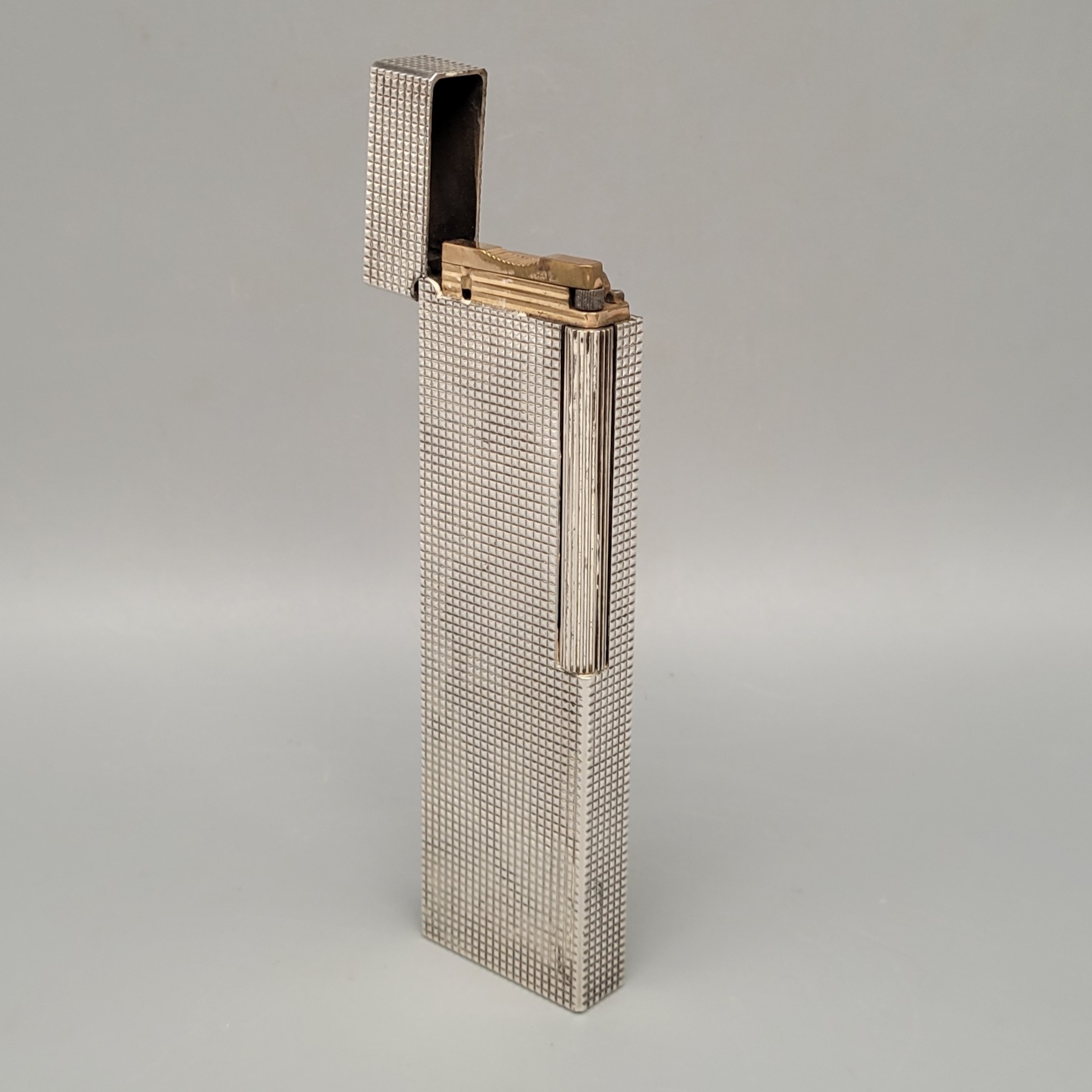 Metall, versilbert, Karo-Muster, Dupont, Paris, Höhe 14 cm (funktionsfähig)