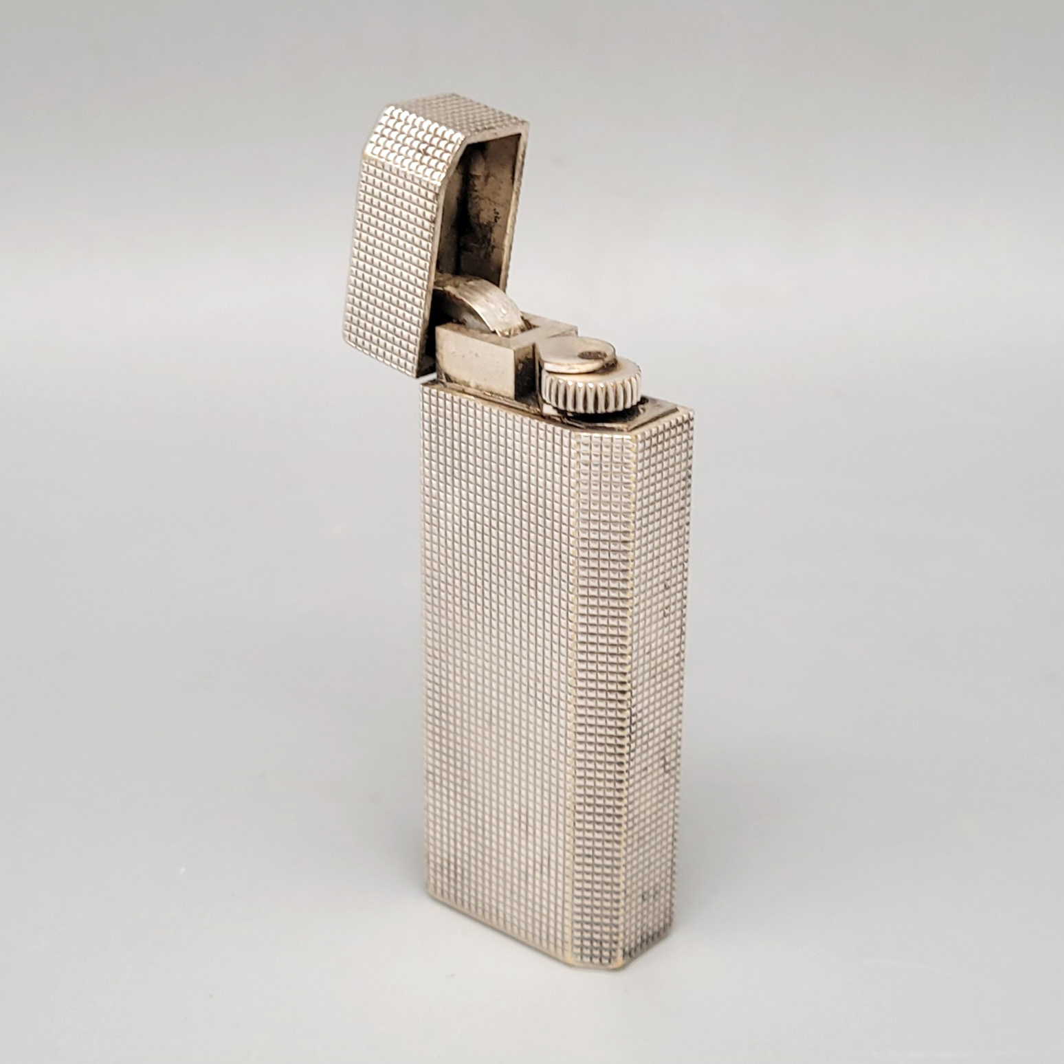 Metall, versilbert, Karo-Muster, Cartier, Paris, Höhe 7 cm (nicht funktionsfähig)