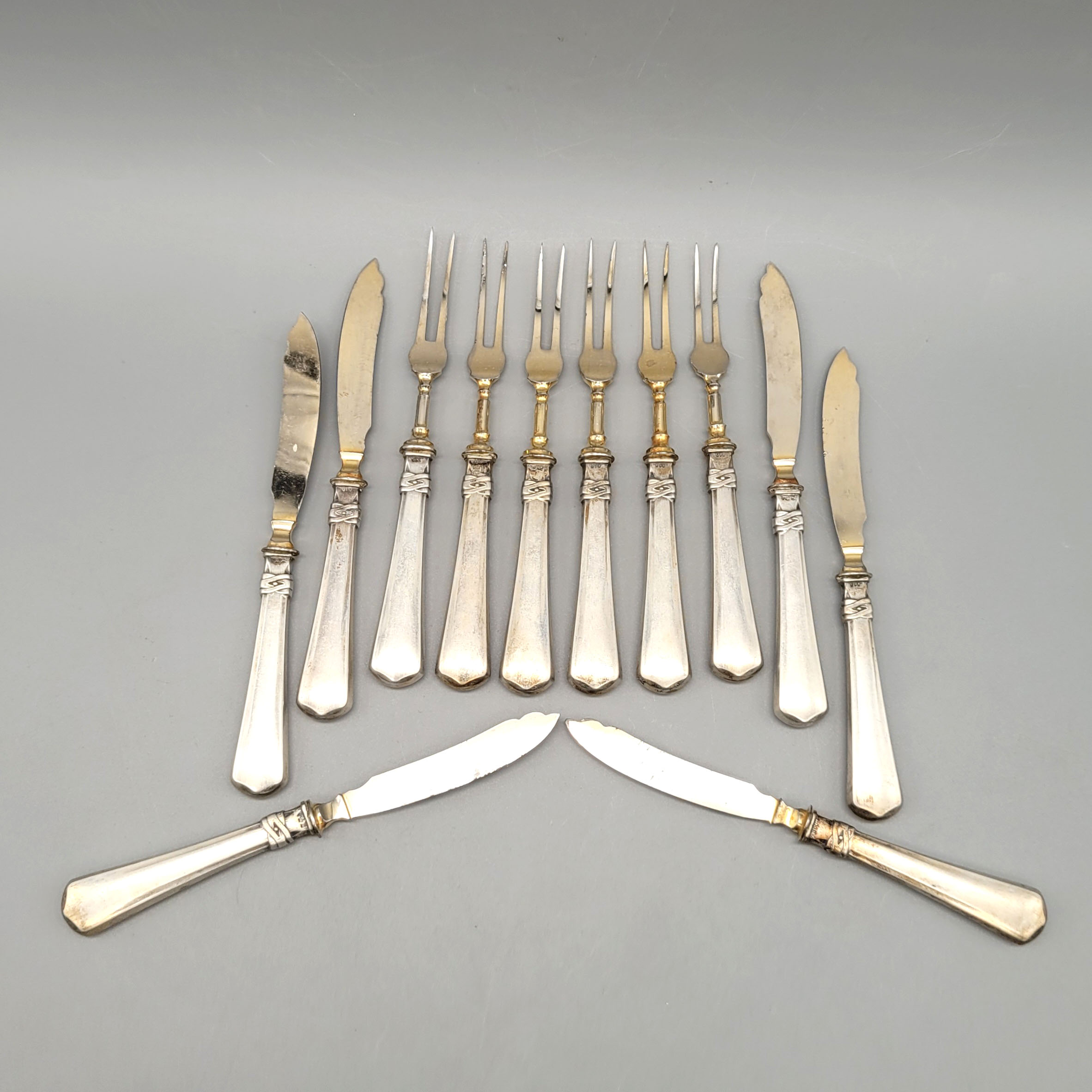 6 Gabeln und 6 Messer, Griffe 800er Silber, Deutsch, um 1900, Länge Meeser 13,5 cm (Originalbox)