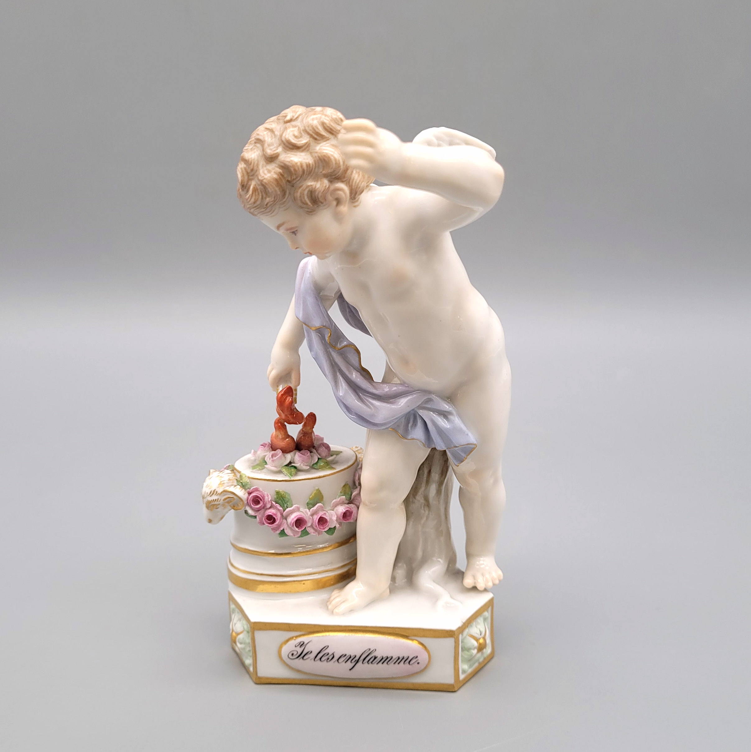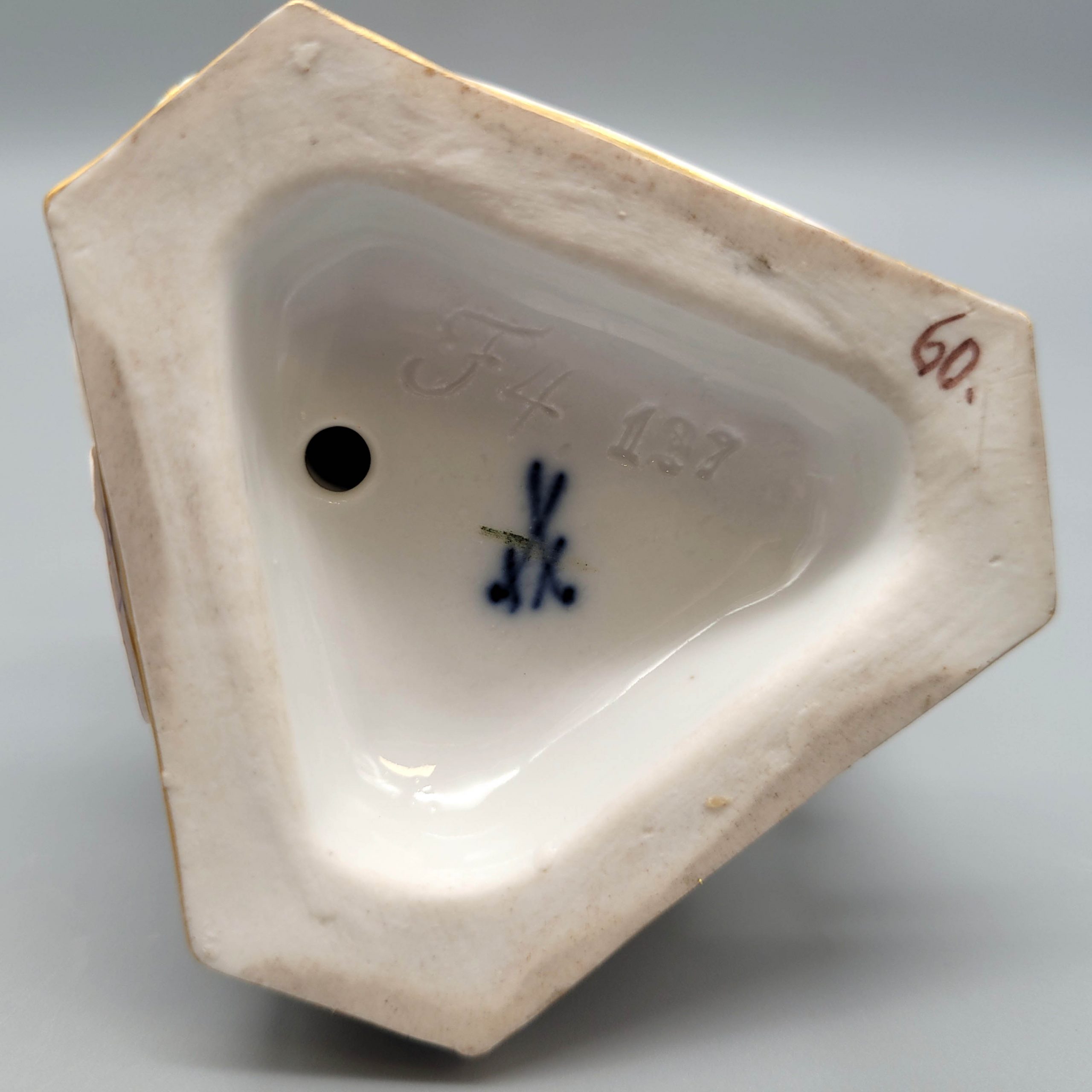 Porzellan, bemalt und vergoldet, Meissen, Knaufschwertermarke, Schleifstrich, Modellnr. F4, Höhe 13 cm (Finger einer Hand bestoßen)
