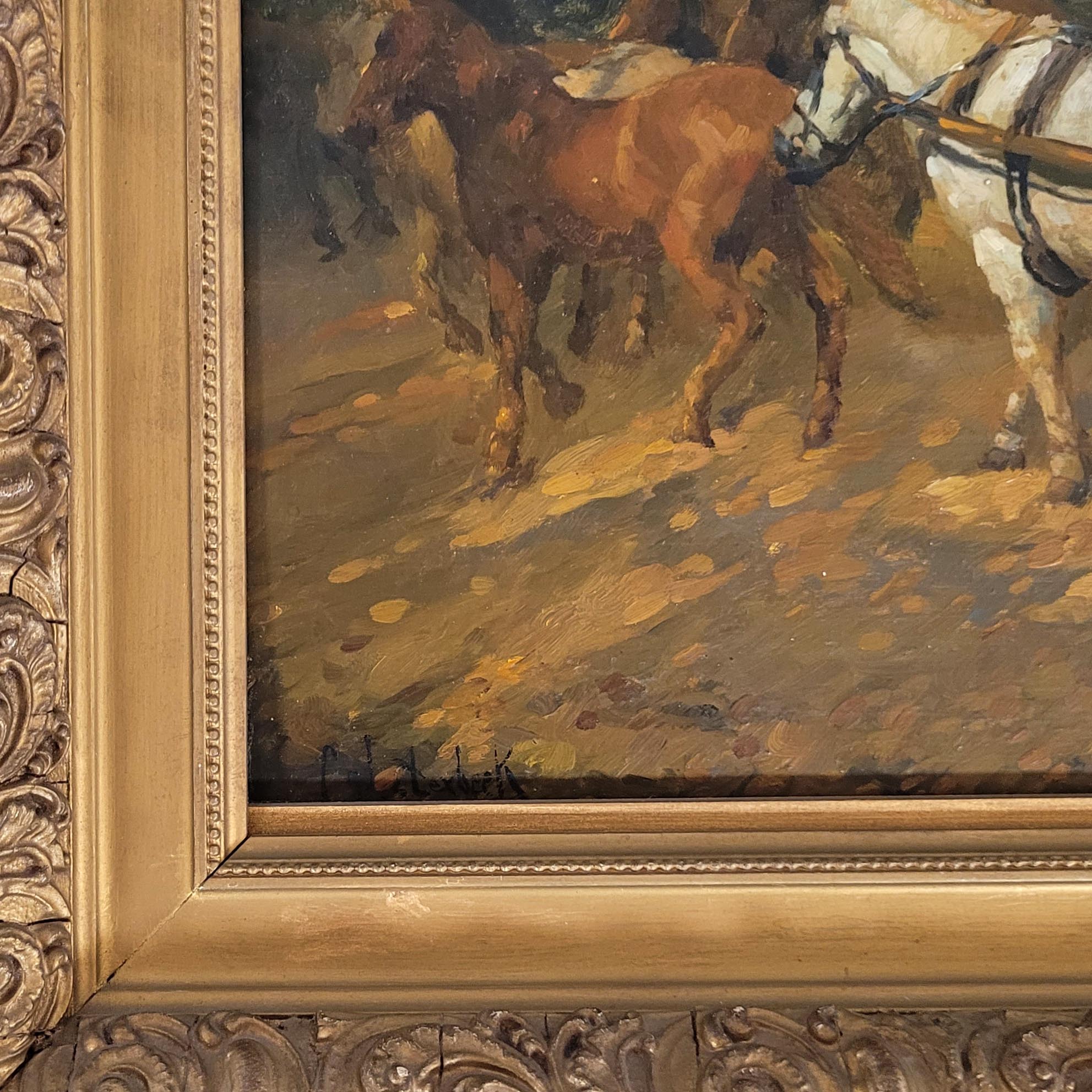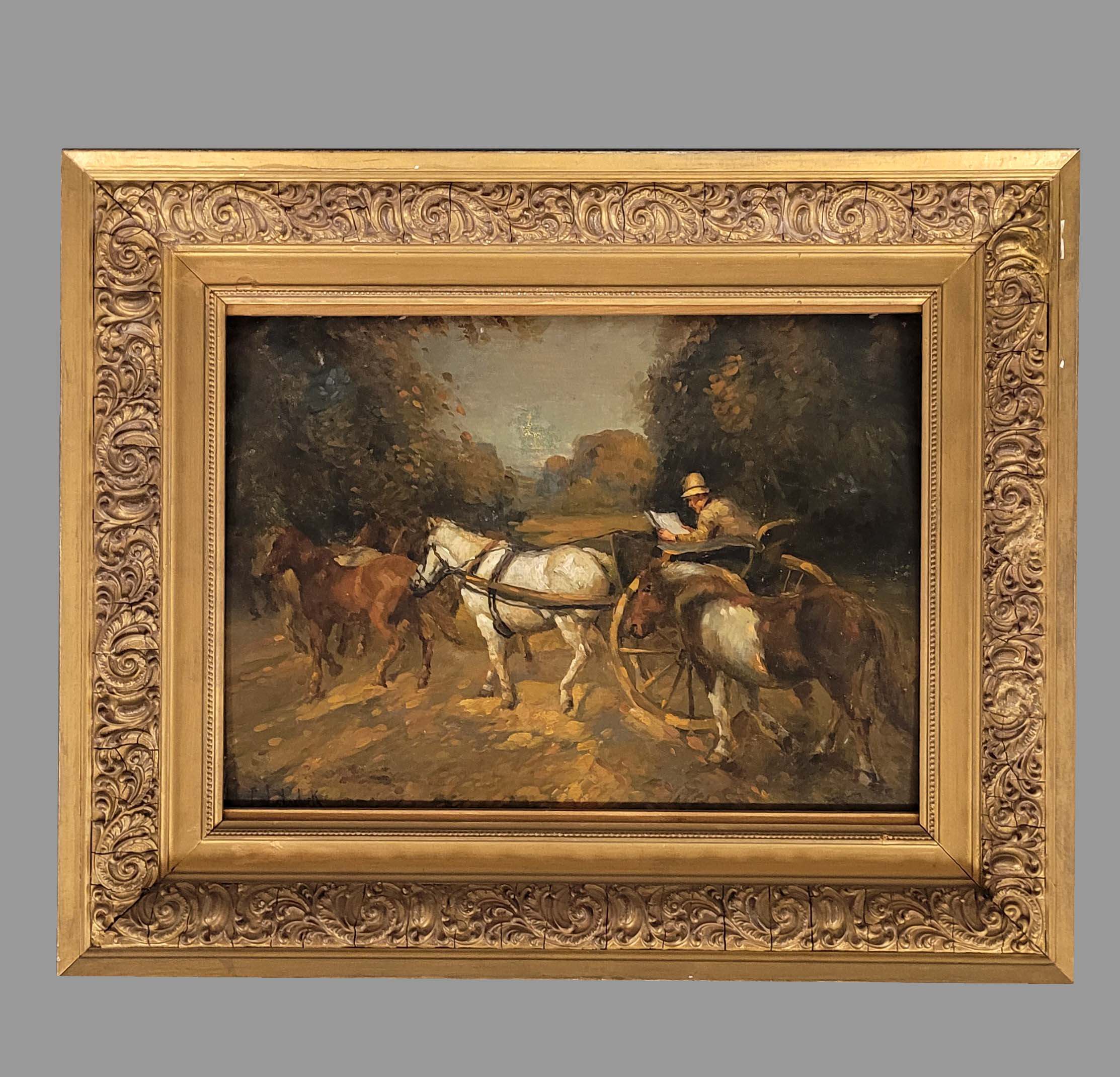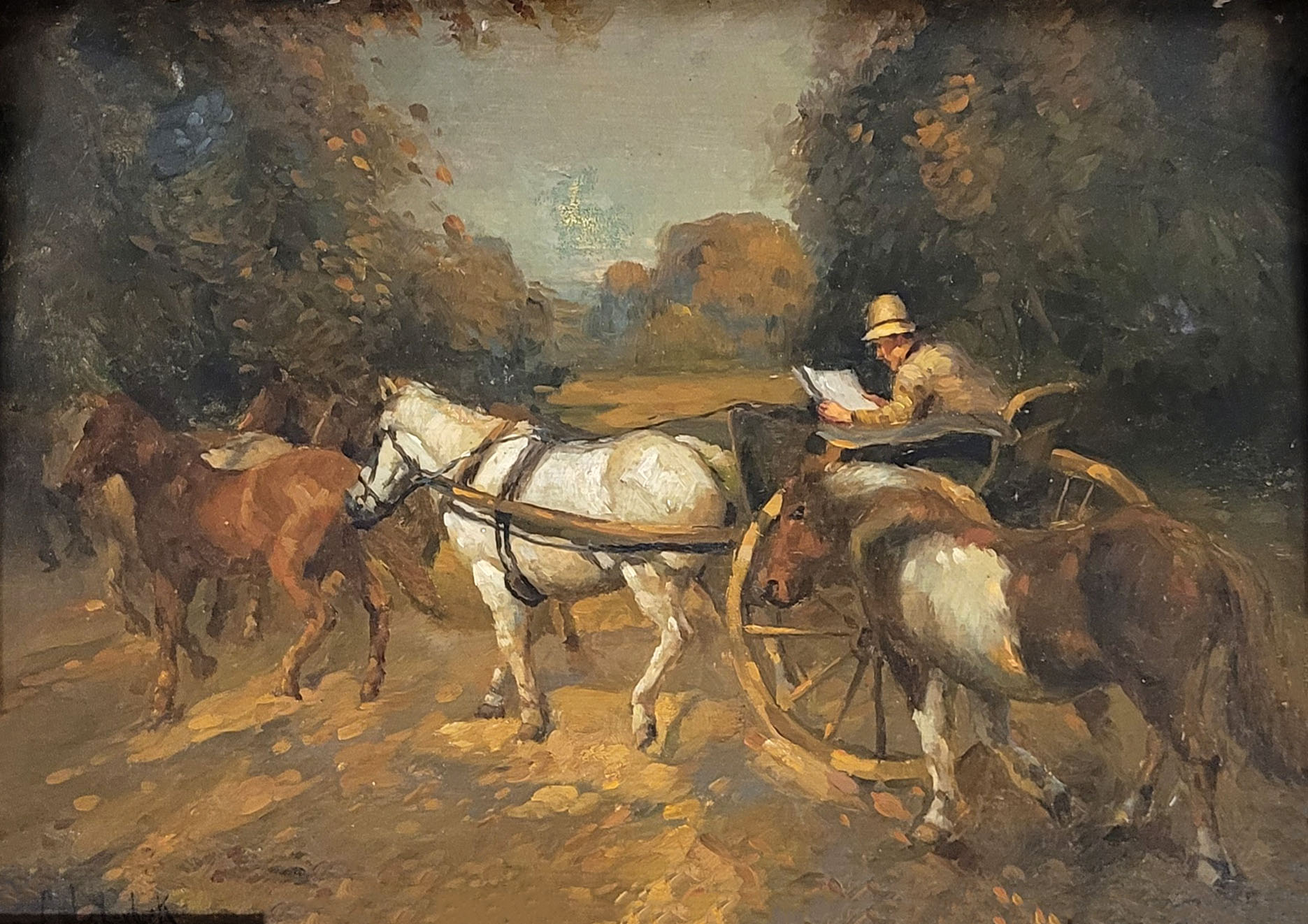 WESTERBEEK, Cornelis (1844-1905): Ausfahrt mit dem EinspännerÖl auf Holz, signiert unten links, 27,5 x 39 cm, Rahmen (Platte leicht gewölbt)