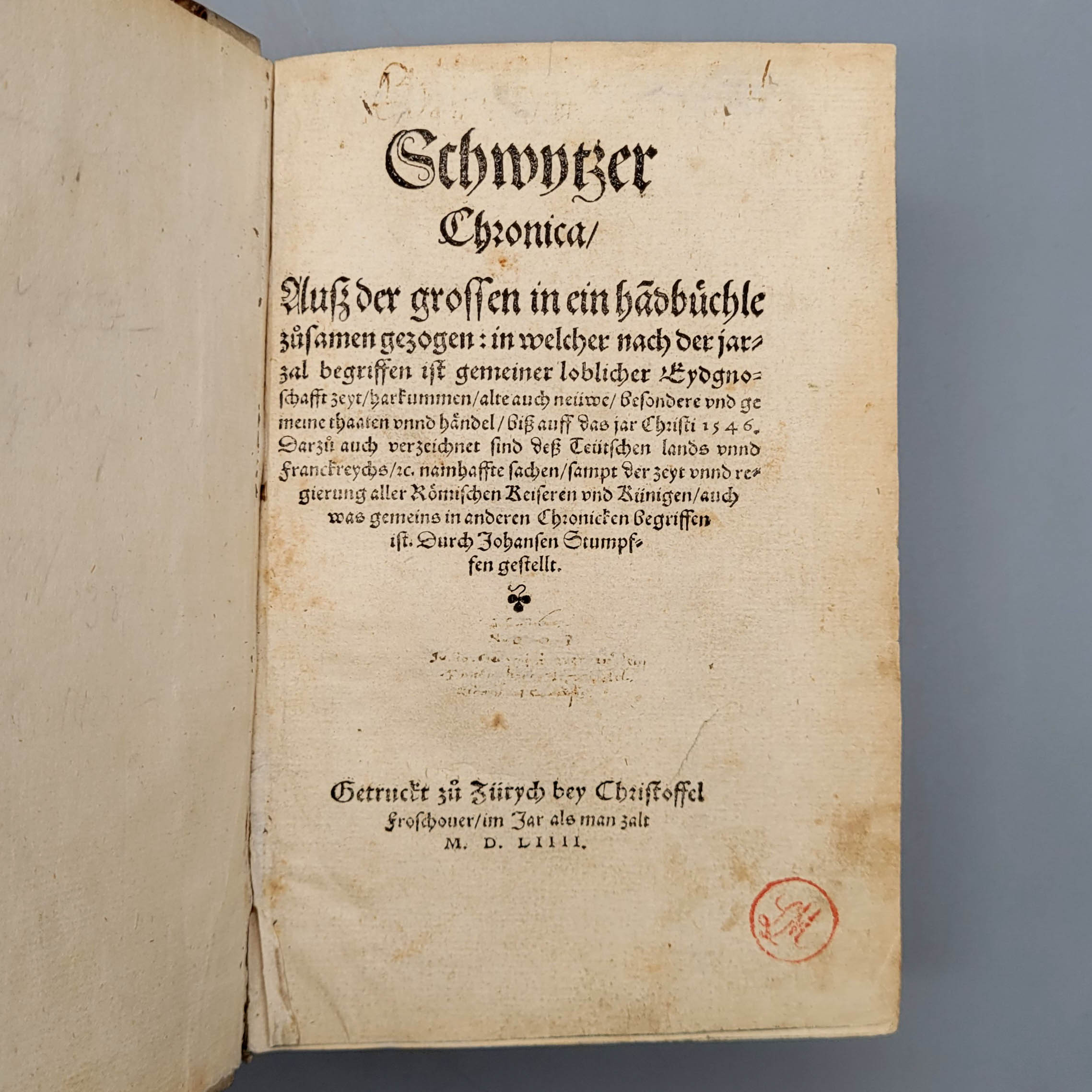 STUMPF, Johannes: Schwytzer Chronica – Auß der grossen in ein ha[n]dbüchle zu(o)samen gezogen….