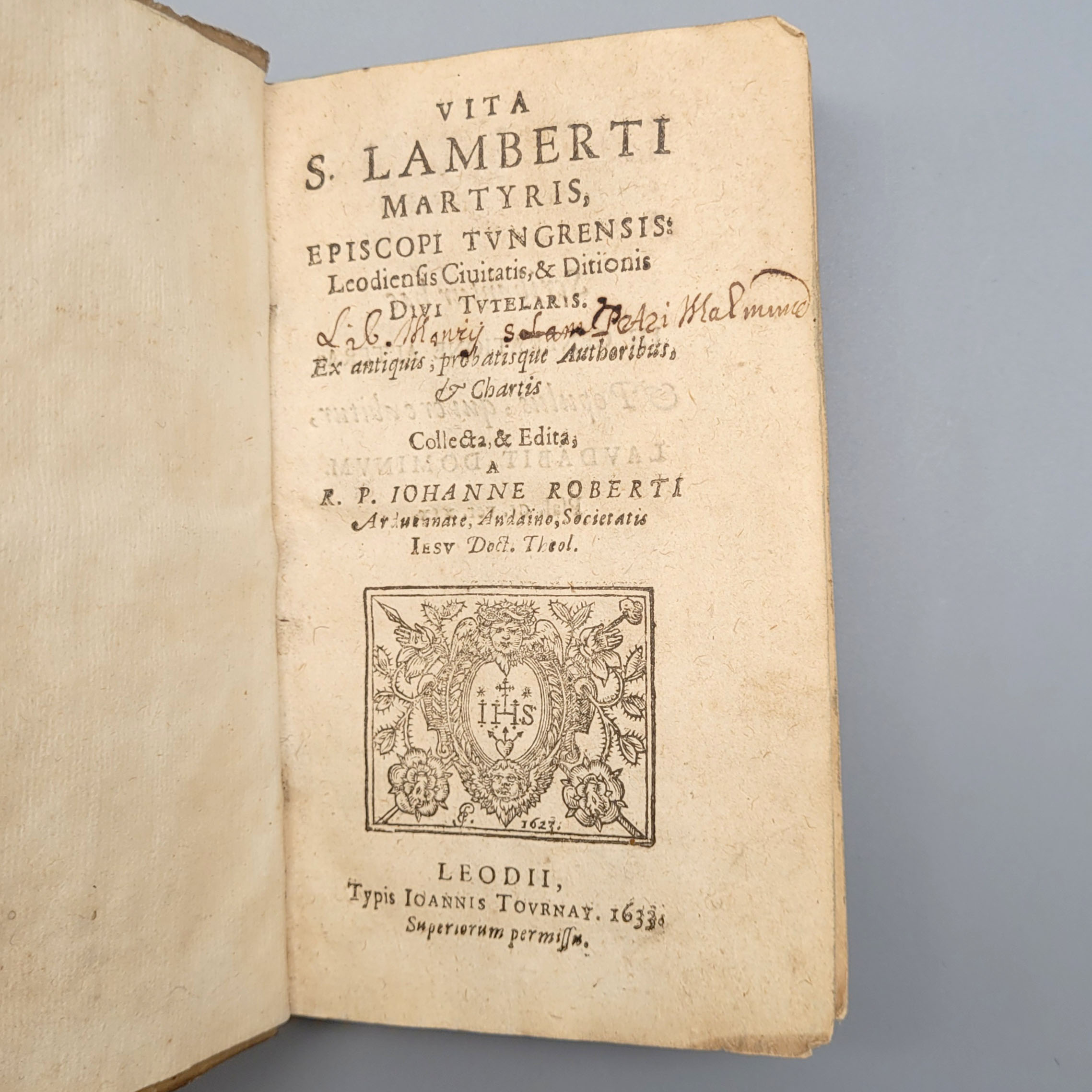 ROBERTI, Johannes: Vita S. Lamberti Martyris, episcopi TungrensisLeiden (Johannes Tournay) 1633 (Pergamenteinband der Zeit Vorderdeckel beschädigt)Wir weisen darauf hin, dass das Buch nicht kollationiert ist
