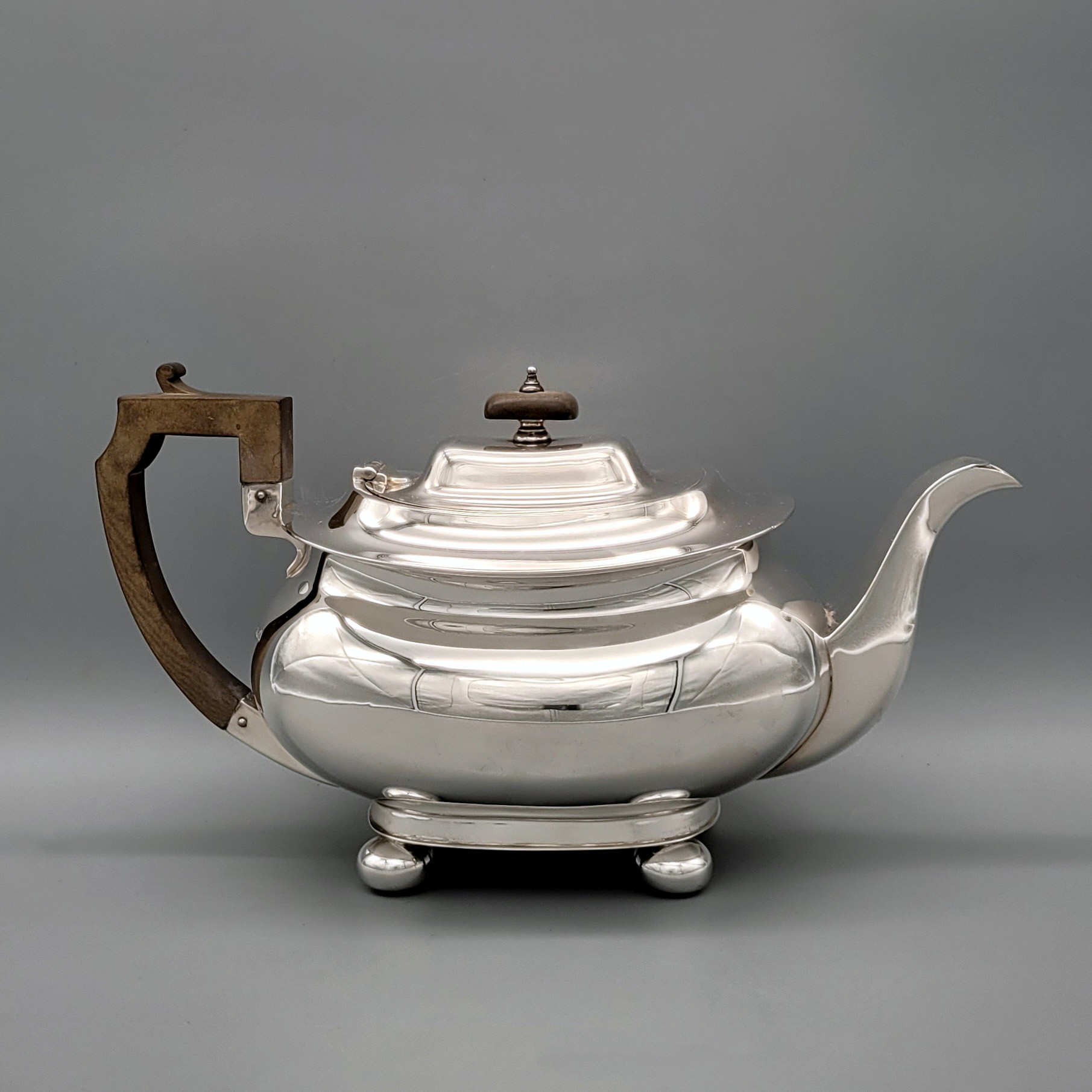 TeekanneSilber, Griff und Deckelknauf Holz, Sheffield 1894, Höhe 15 cm, Gewicht 676g
