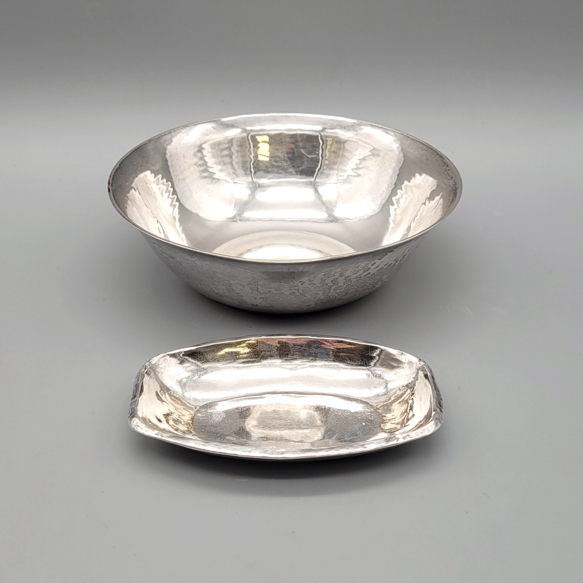 Runde Schale835er Silber, Jacob Grimminger, Schwäbisch Gmünd, Höhe 4 cm, Durchmesser 13 cm, Gewicht 168g beigelegt Schälchen, 925er Silber, 1,5 x 9 x 6 cm, Gewicht 75g