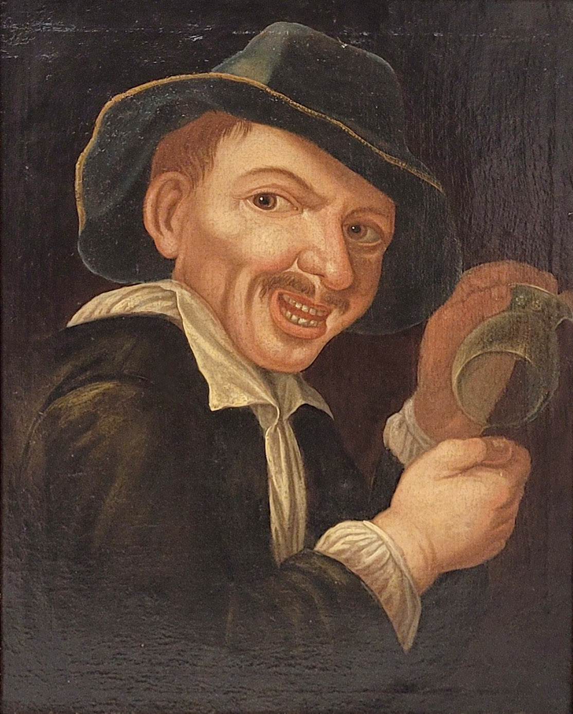 NIEDERLÄNDISCHER MEISTER (17./18. Jh.): Der GeschmackÖl auf Leinwand, doubliert, seitenverkehrte Kopie nach einem Gemälde von Petrus Staverenus (1604-1684), 51 x 38 cm, Rahmen