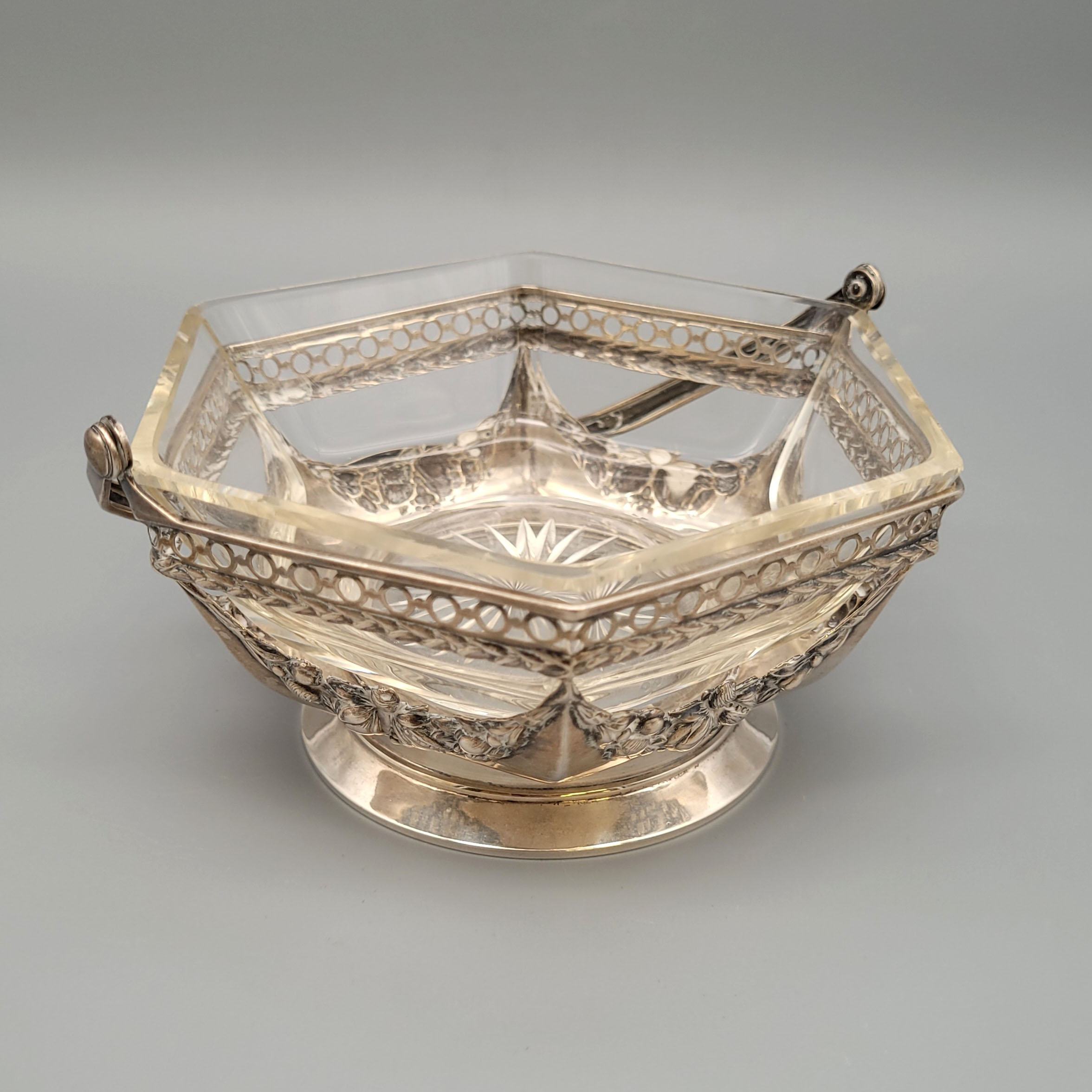 Henkelschale800er Silber, Kühn Gebrüder, Schwäbisch Gmünd, Glaseinsatz, geschliffen, Höhe ca. 14 cm, Gewicht 112g