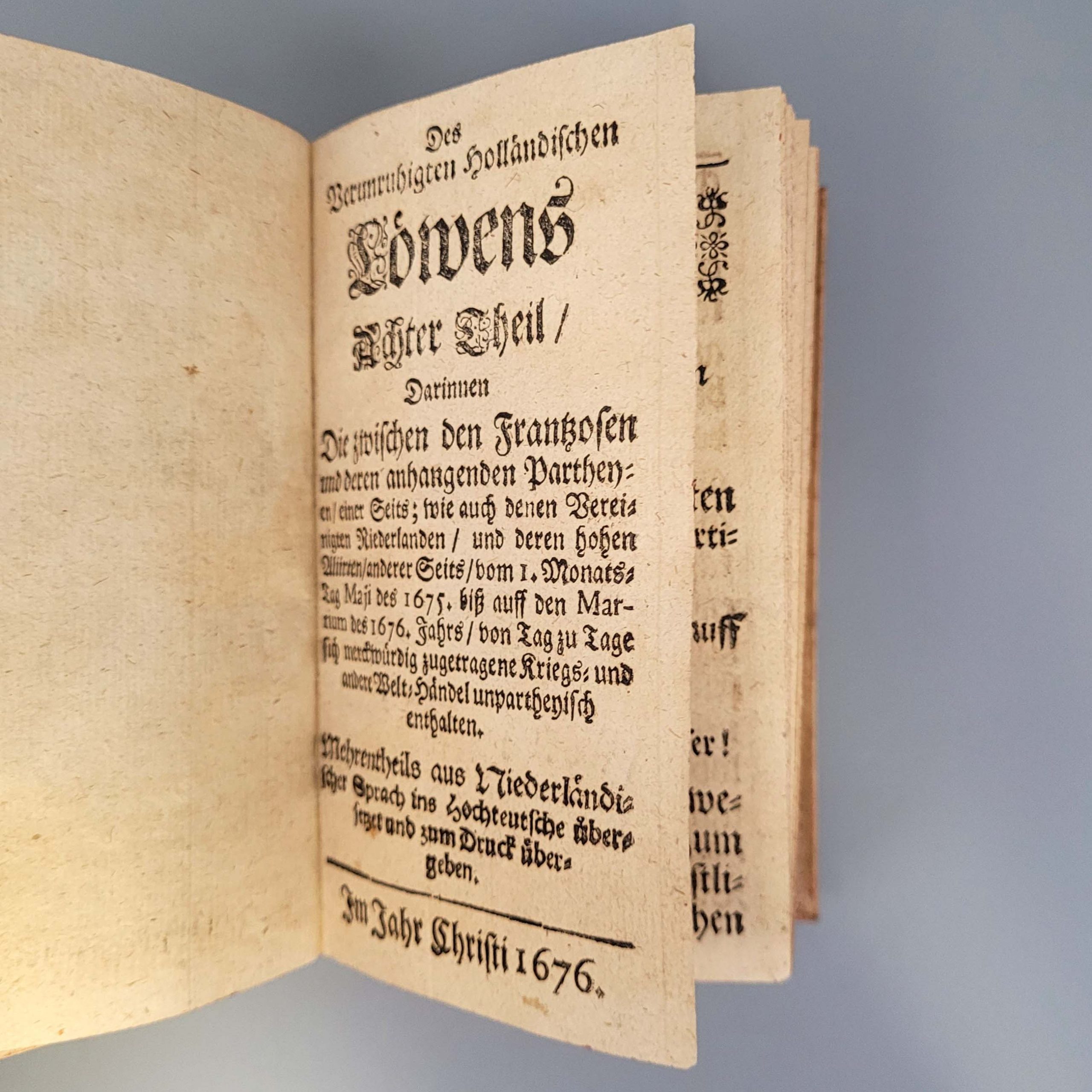GRYBIUS, Johannes: Des verunruhigten Holländischen Löwens achter Theil – Mehrentheils aus Niederländischer Sprach ins Hochteutsche übersetzet