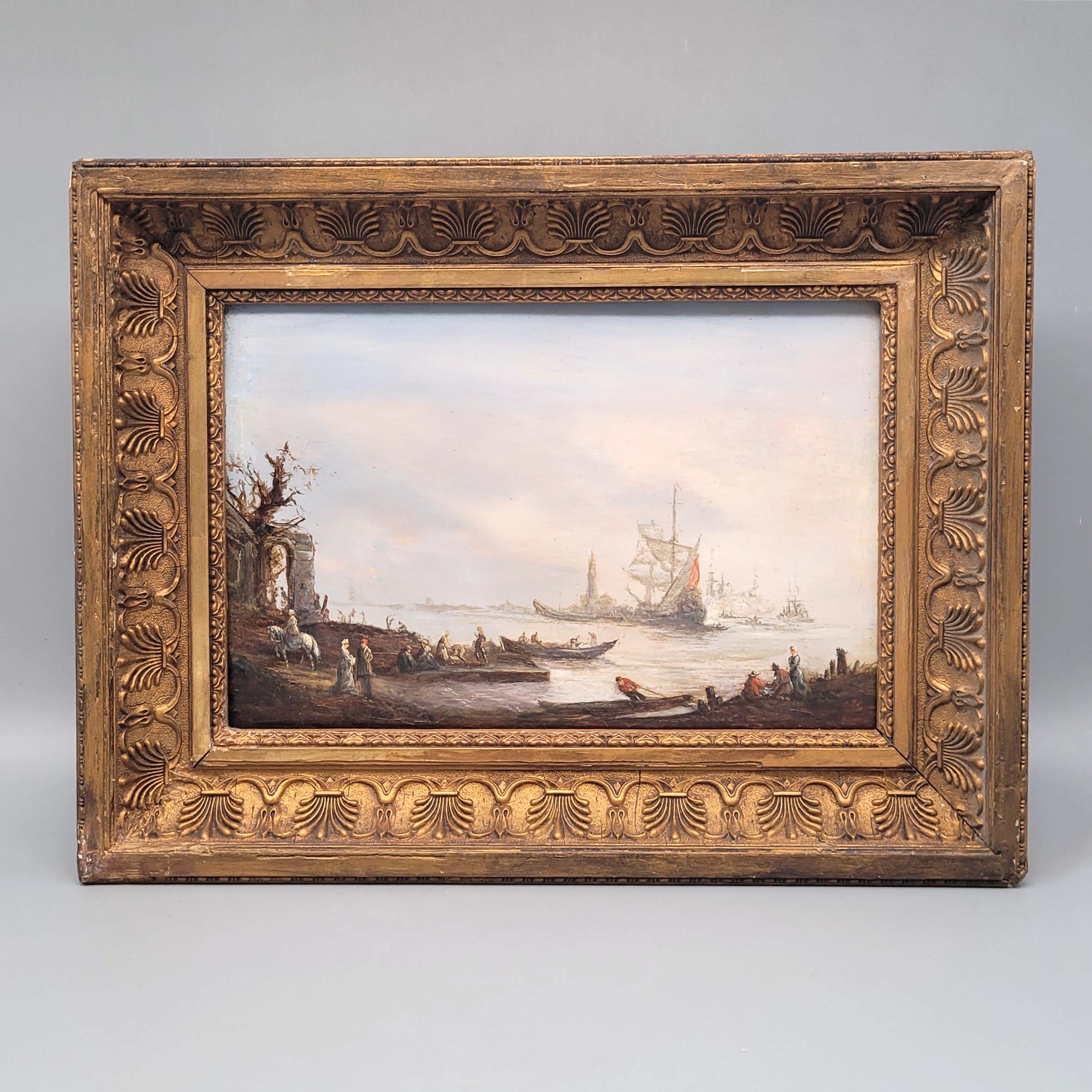 Öl auf Holz, verso bezeichnet mit Ritzinschrift „Claude Lorrain“, 18,5 x 27,5 cm, Rahmen