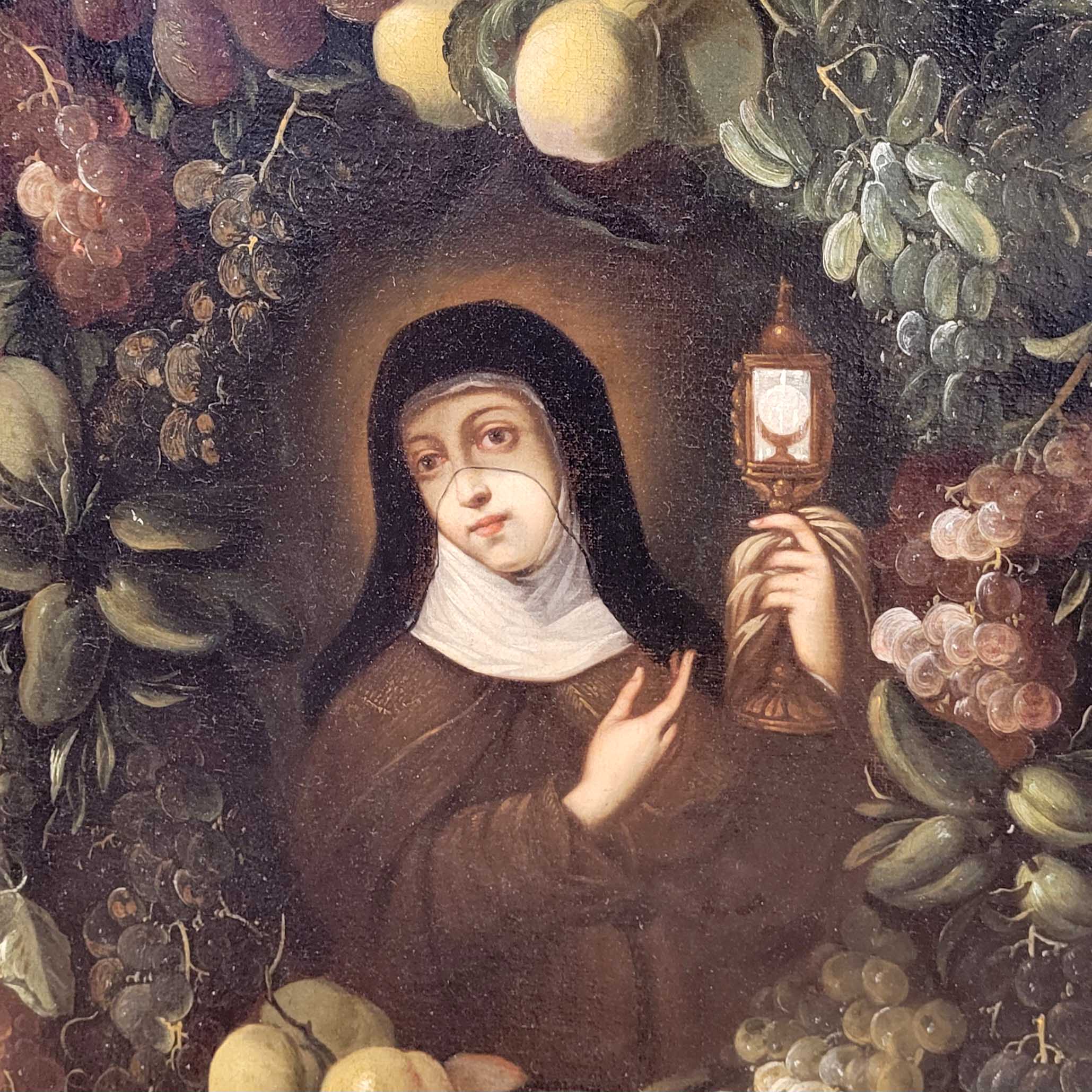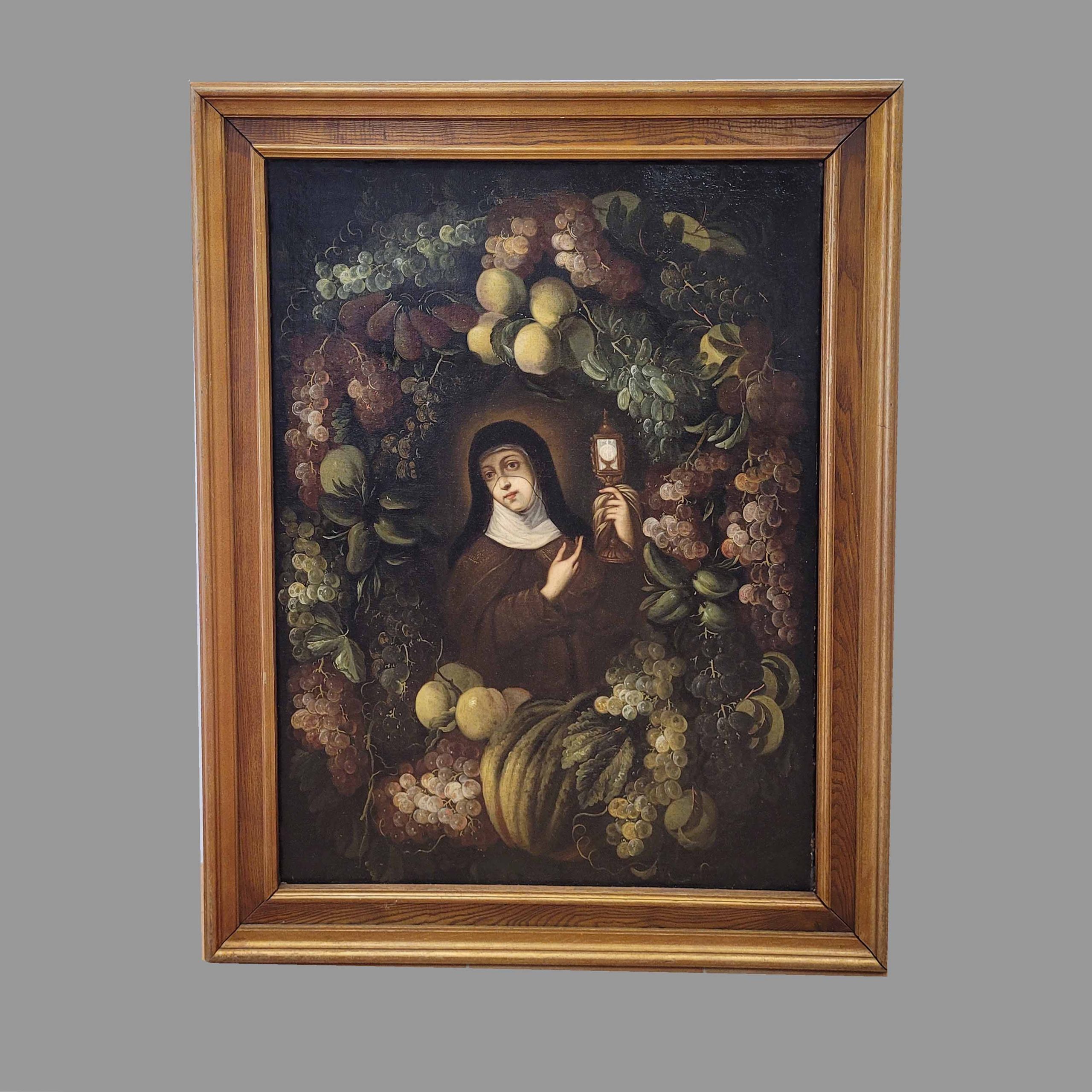 FLÄMISCHER MEISTER (17. Jh.): Heilige Clara im BlütenkranzÖl auf Leinwand, doubliert, 95 x 70 cm, Rahmen
