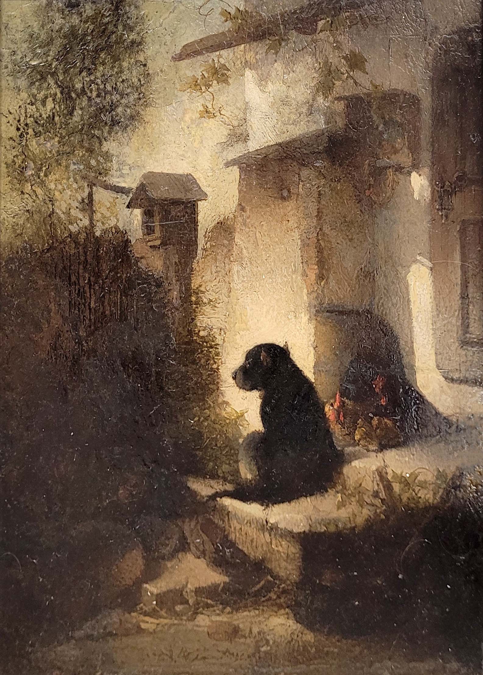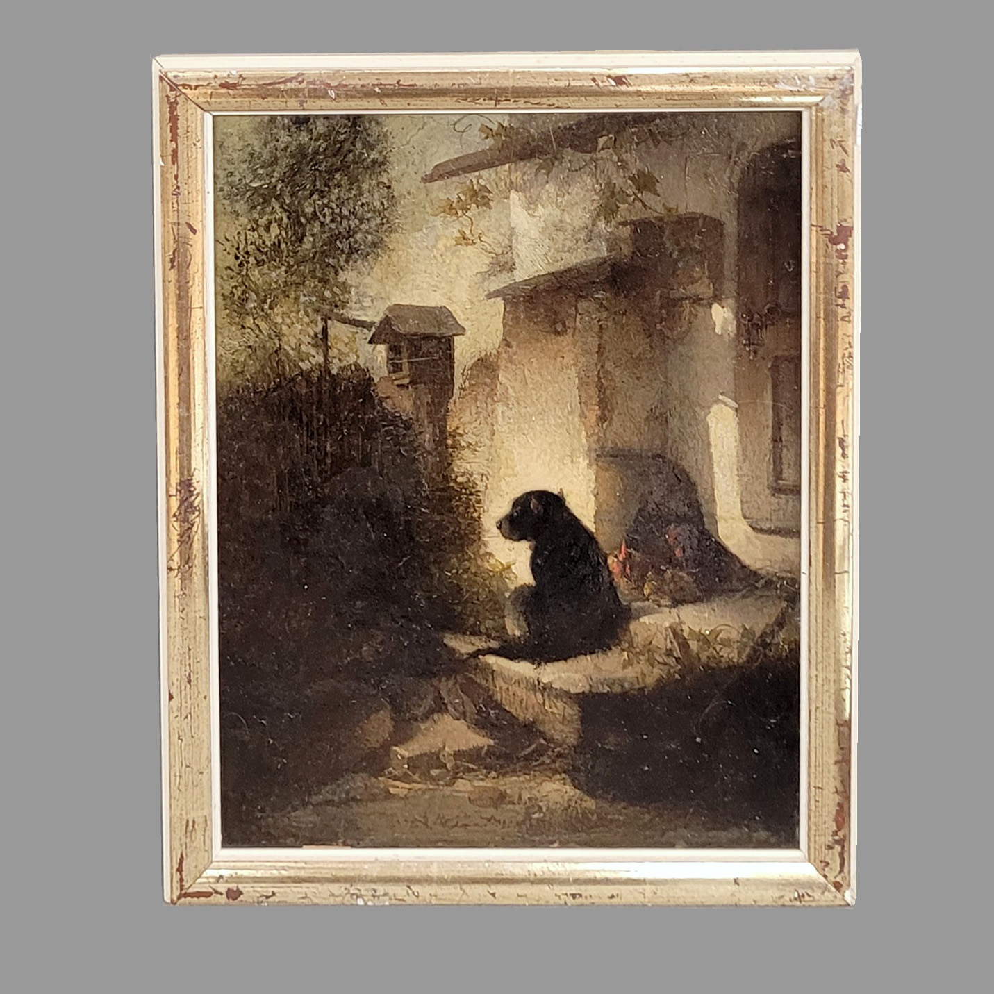 PISCHINGER, Carl (1823-1886): Der treue WachhundÖl auf Leinwand, auf Holz gezogen, Restsignatur unten Mitte, 34 x 25 cm, Rahmen (restauriert)