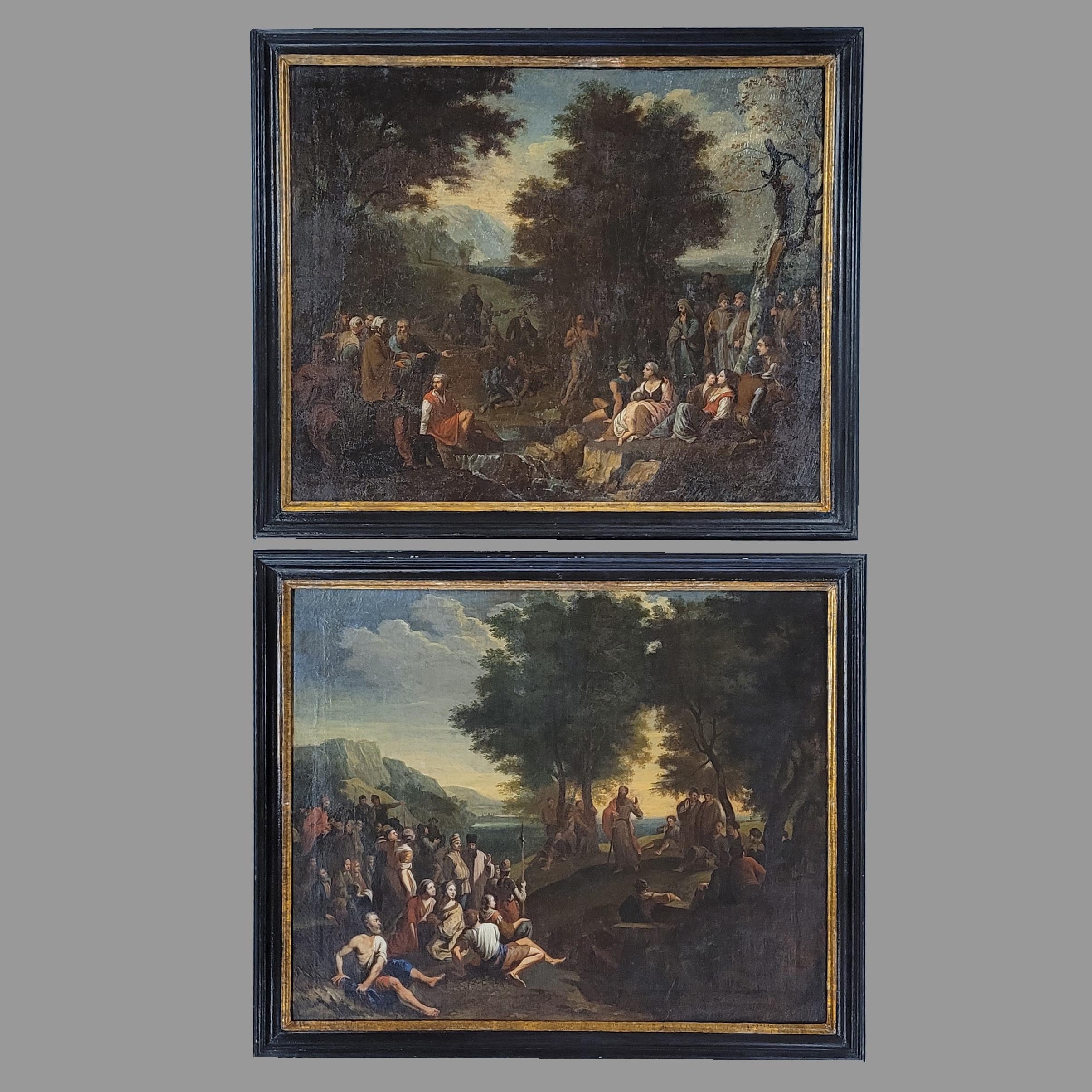 BEICH, Franz Joachim (1666-1748): Predigt Johannes des Täufers / Bergpredigt Jesuzugeschrieben, Gemäldepaar, Öl auf Leinwand, doubliert, 68 x 83 cm, Rahmen