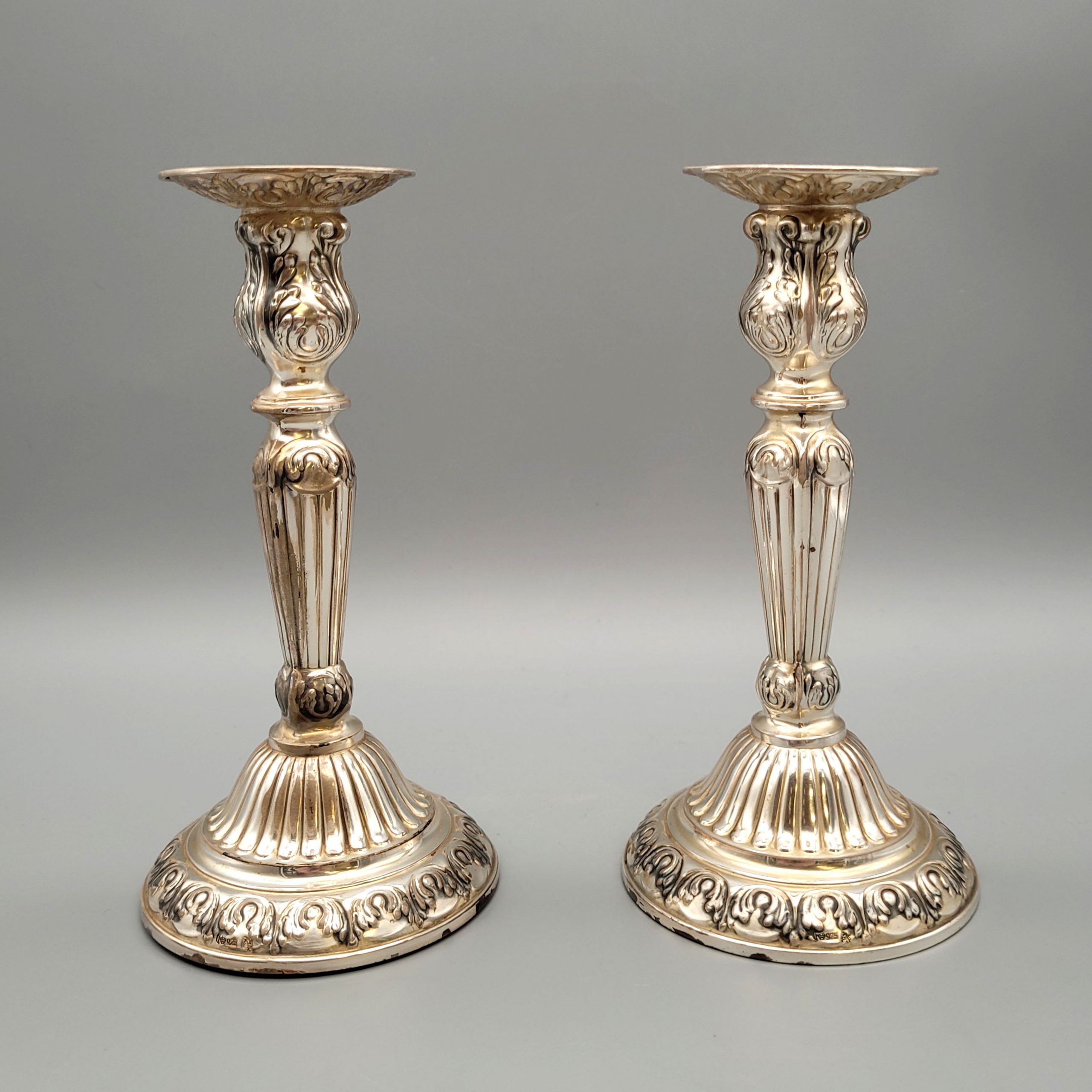 Paar Tischleuchter925er Silber, Fuß gefüllt, Deyhle Gebrüder, Schwäbisch Gmünd, Höhe 18 cm