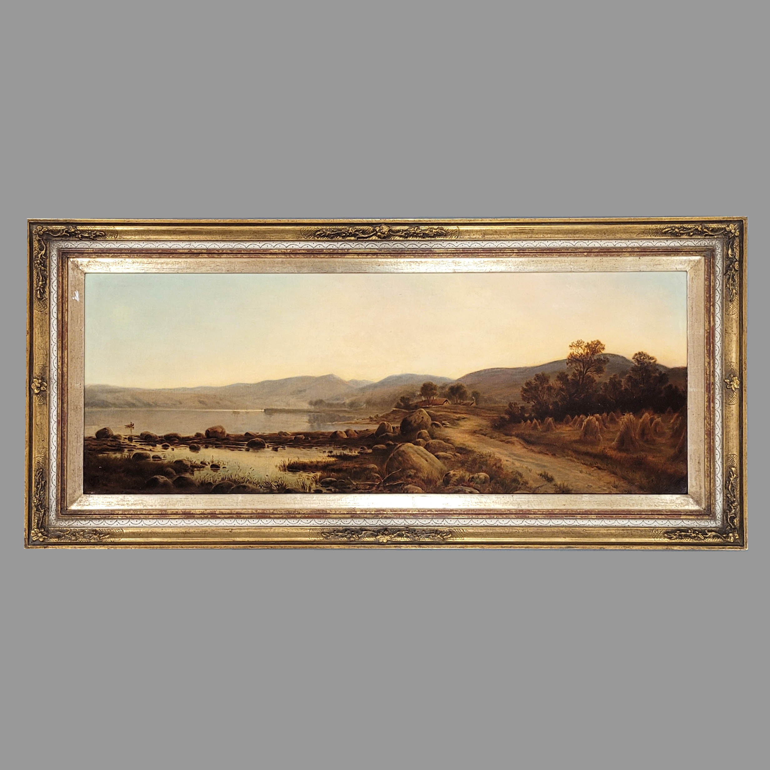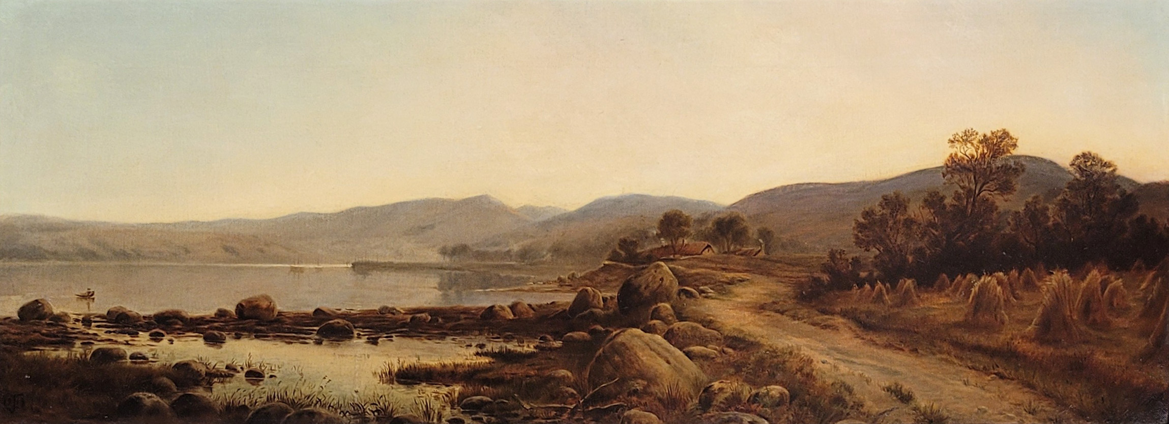 SCHOTTISCHER MEISTER (tätig um 1900): Lamlash Bay, Isle of ArranKopie nach Paton, Waller Hugh (1828-1895), Öl auf Leinwand, monogrammiert „T“ und datiert 1913 unten links, 36 x 94 cm, Rahmen