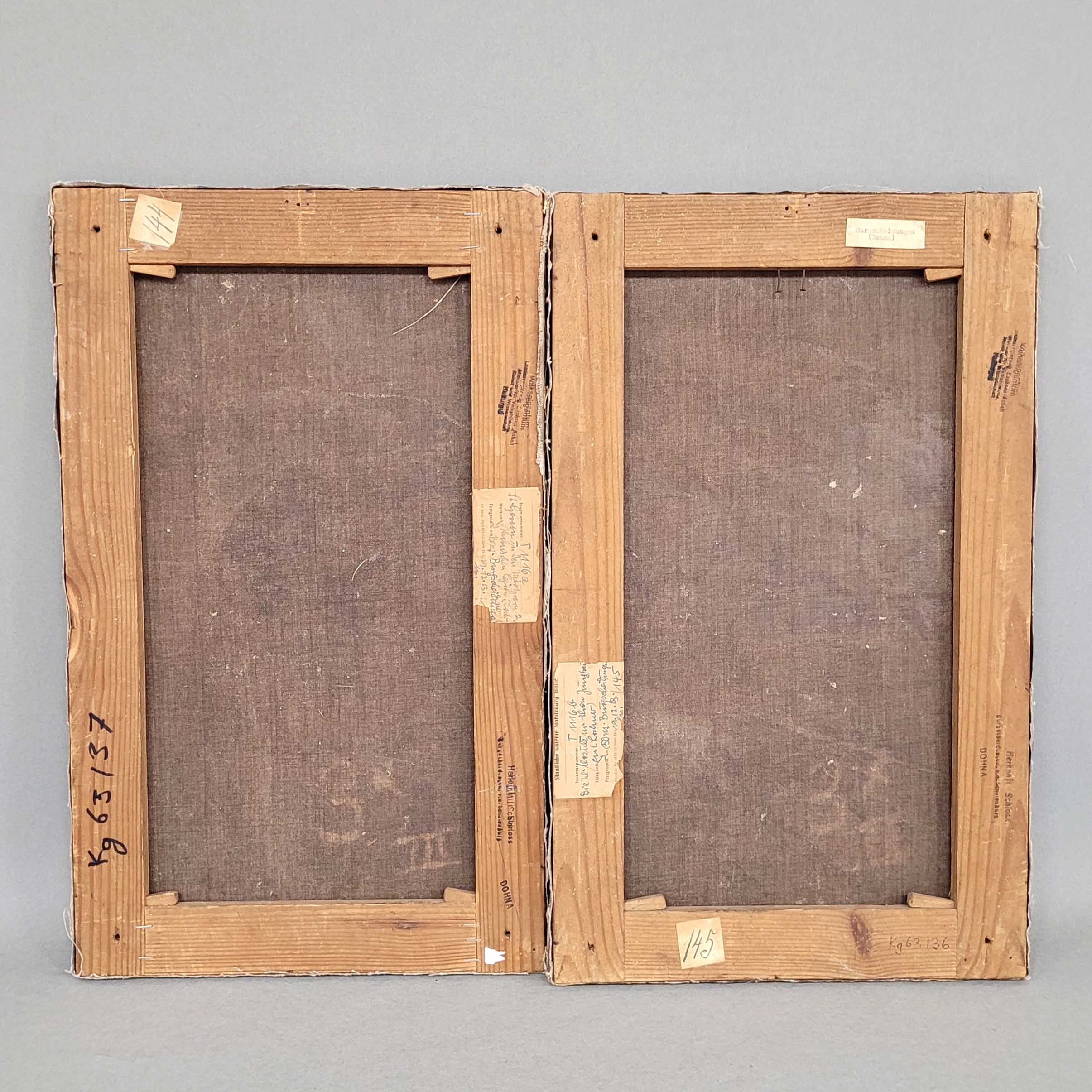 Gemäldepaar, Öl auf Leinwand (nach Stefan Lochner), 52,5 x 32 cm (verso Aufkleber Stattliche Galerie Moritzburg, Halle mit Prov.: Schloss Burgscheidungen (Dohna) Inventarzettel von 1913)