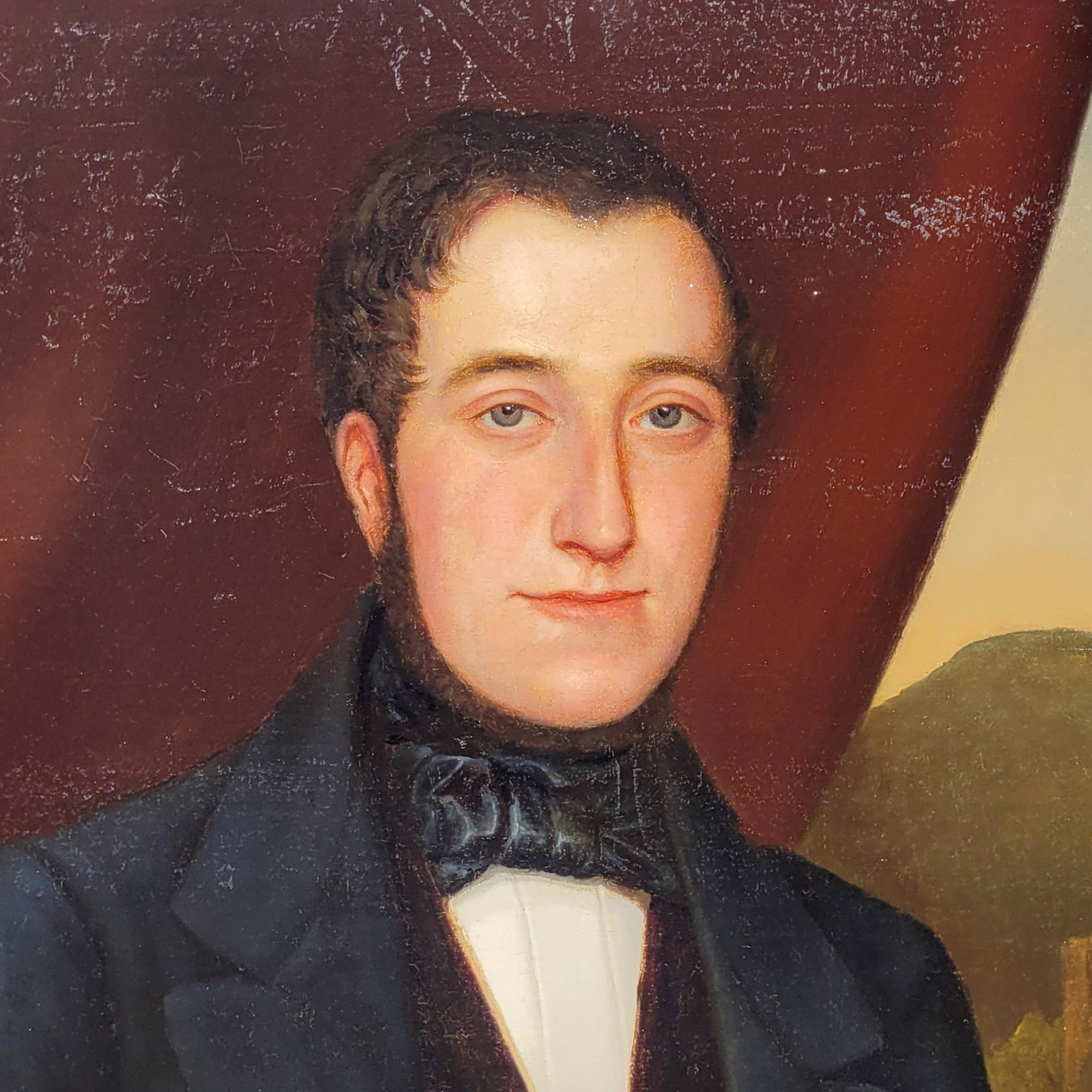 Öl auf Leinwand, auf Holz gezogen, signiert und datiert 1842, 103 x 81,5 cm (Robert Troost warTeilhaber der Firma Abraham Troost & Söhne“ in Elberfeld und Manchester und leitete den Firmensitz in Manchester. Darüber hinaus unterhielt er mit seiner Frau eine Villa in Bad Godesberg)