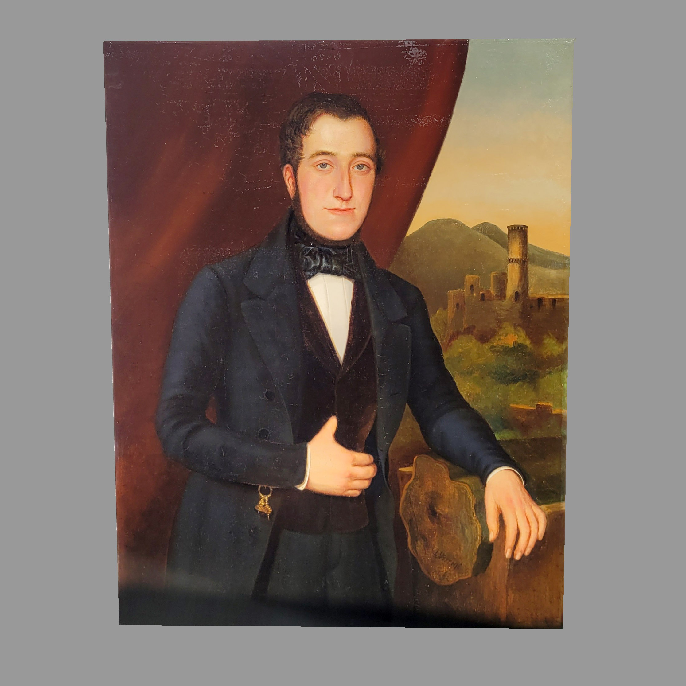 VERREYT, Johann Jacob (1807-1872): Porträt des Wuppertaler Kaufmanns Robert Troost (1816-1874) vor der Godesburg