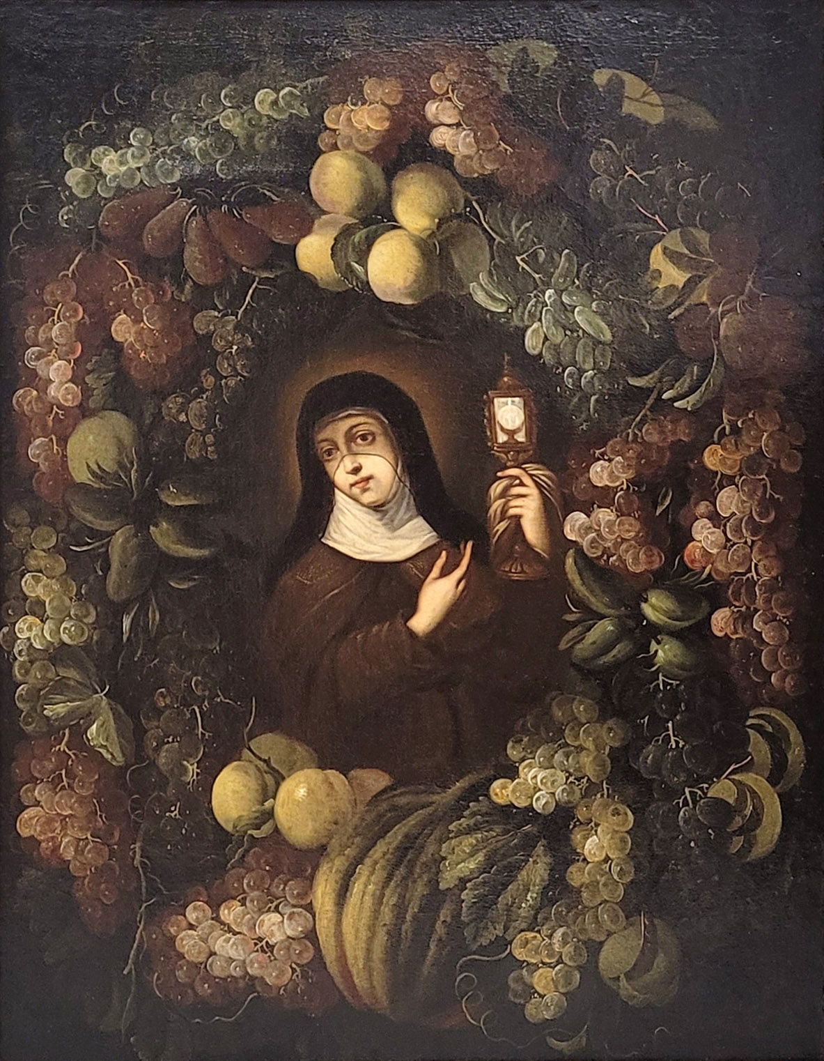FLÄMISCHER MEISTER (17. Jh.): Heilige Clara im Blütenkranz
