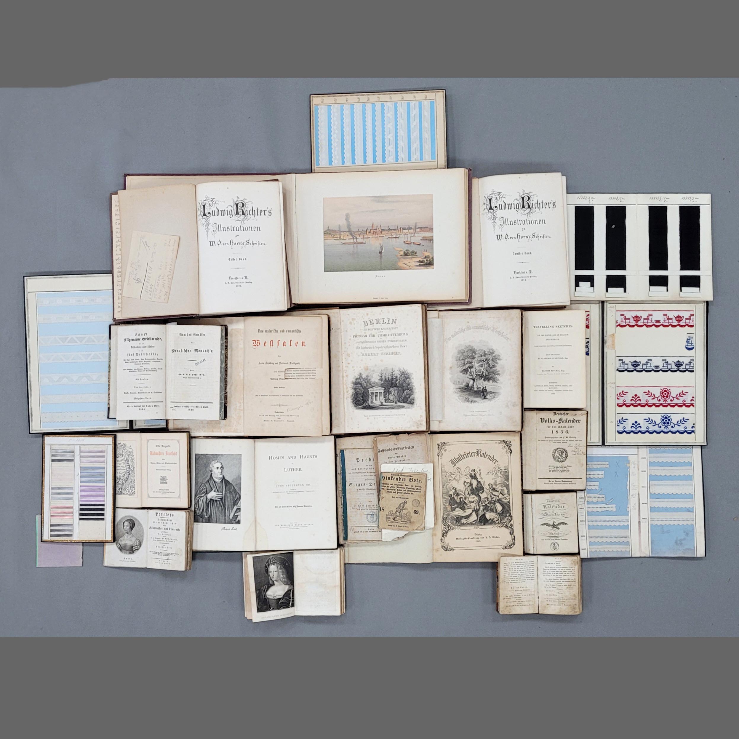 Konvolut Bücher 19. JahrhundertReiseliteratur (Westfalen, Rheinland), Jahreskalender, Literatur etc., verschiedene ZuständeWir weisen darauf hin, dass die Bücher nicht kollationiert sind.