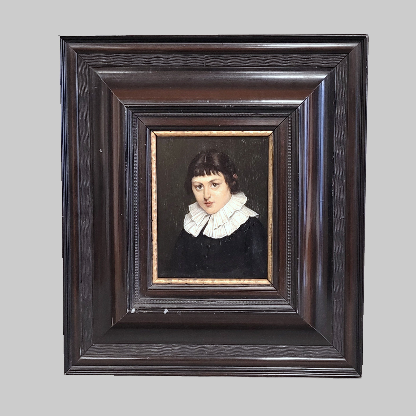 bezeichnet, Öl auf Holz, verso auf dem Rahmen bezeichnet „Kaulbach“, 18 x 13,5 cm, Rahmen (möglichweise handelt es sich bei der Dargestellten unseres Gemäldes um das gleiche Mädchenmodell, dass Kaulbach schon vor 1901 in einer Zeichnung porträtiert hat. Dieses zierte schließlich das Titelblatt der Wochenzeitschrift „Die Jugend“ Band 38 von 1901. Das Mädchen auf unserem Gemälde wirkt etwas reifer, so dass unser Gemälde vielleicht um 1905 entstanden ist)