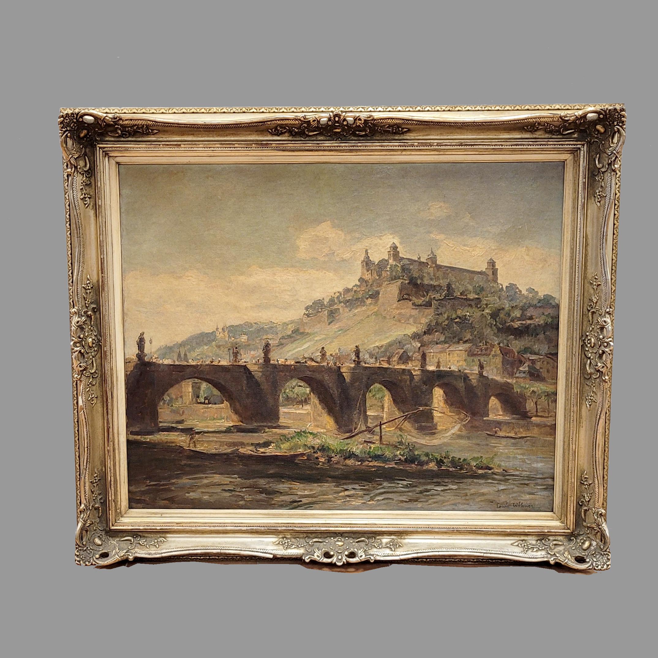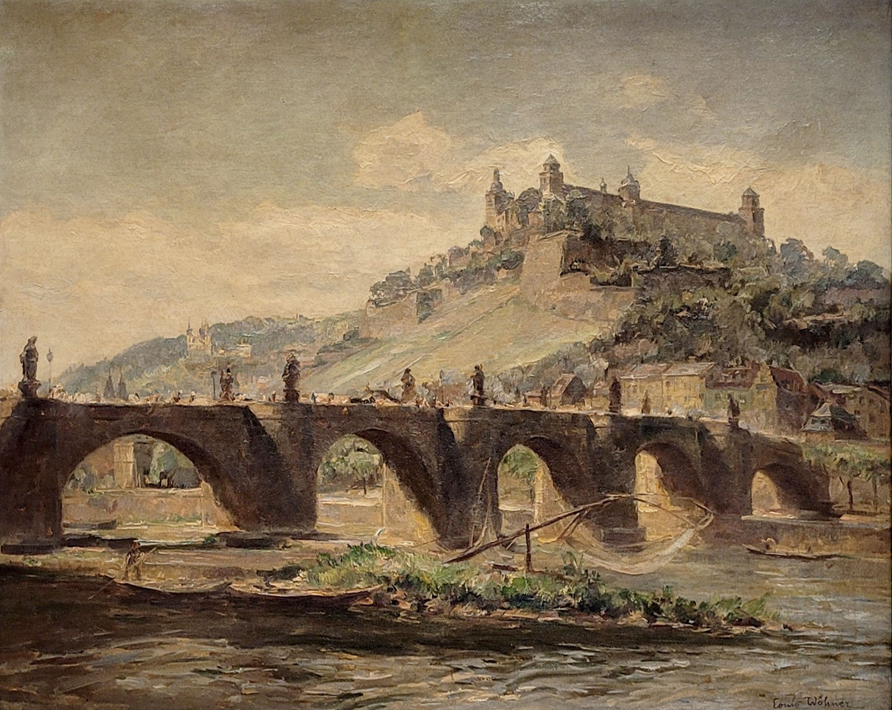 WÖHNER, Louis (1888-1958): Blick über die alte Mainbrücke auf die Festung Marienberg in Würzburg